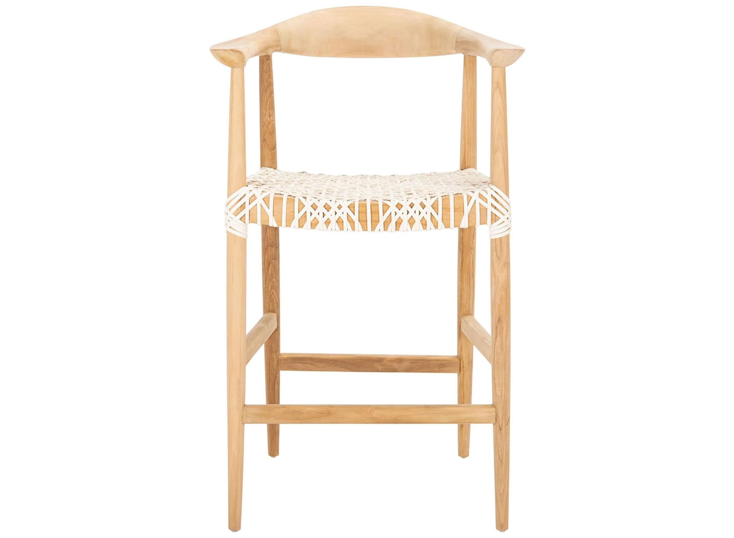 This Calvin counter stool highlights all the best of contemporary design: clean lines, subtle curves, and stunning designer details. Calvin gives any decor a trendsetting aesthetic with its woven leather seat in a geometric lattice, beautifully offsetting its smoothly curved natural frame.
