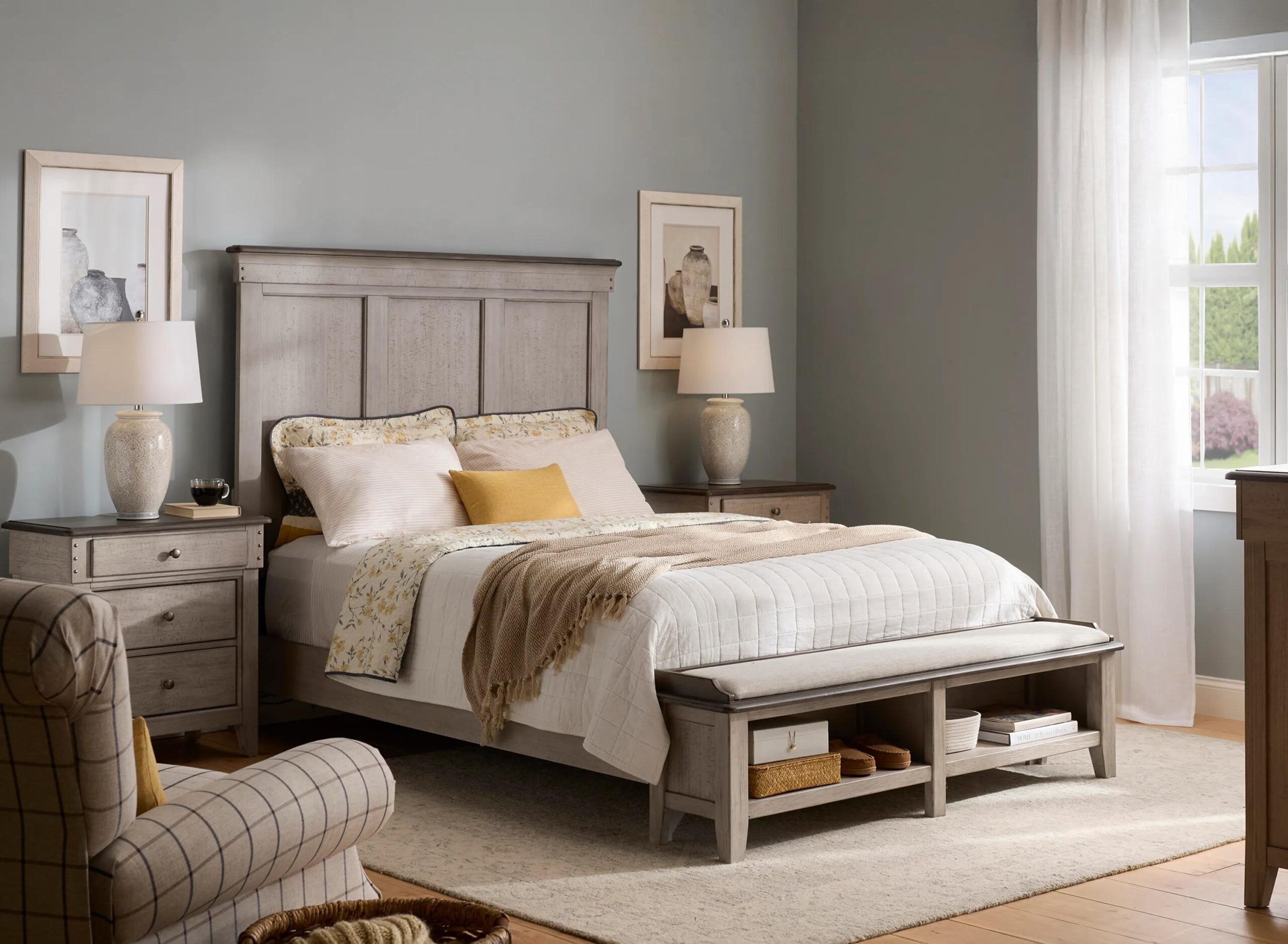 Ground your sleeping quarters with the warm authenticity of the Campbell 4-pc. storage bedroom set. Crafted from solid wood with time-honored mortise and tenon joinery, pin nailhead trim, and a distressed finish treatment, this collection brings heirloom-quality charm and character to your home.