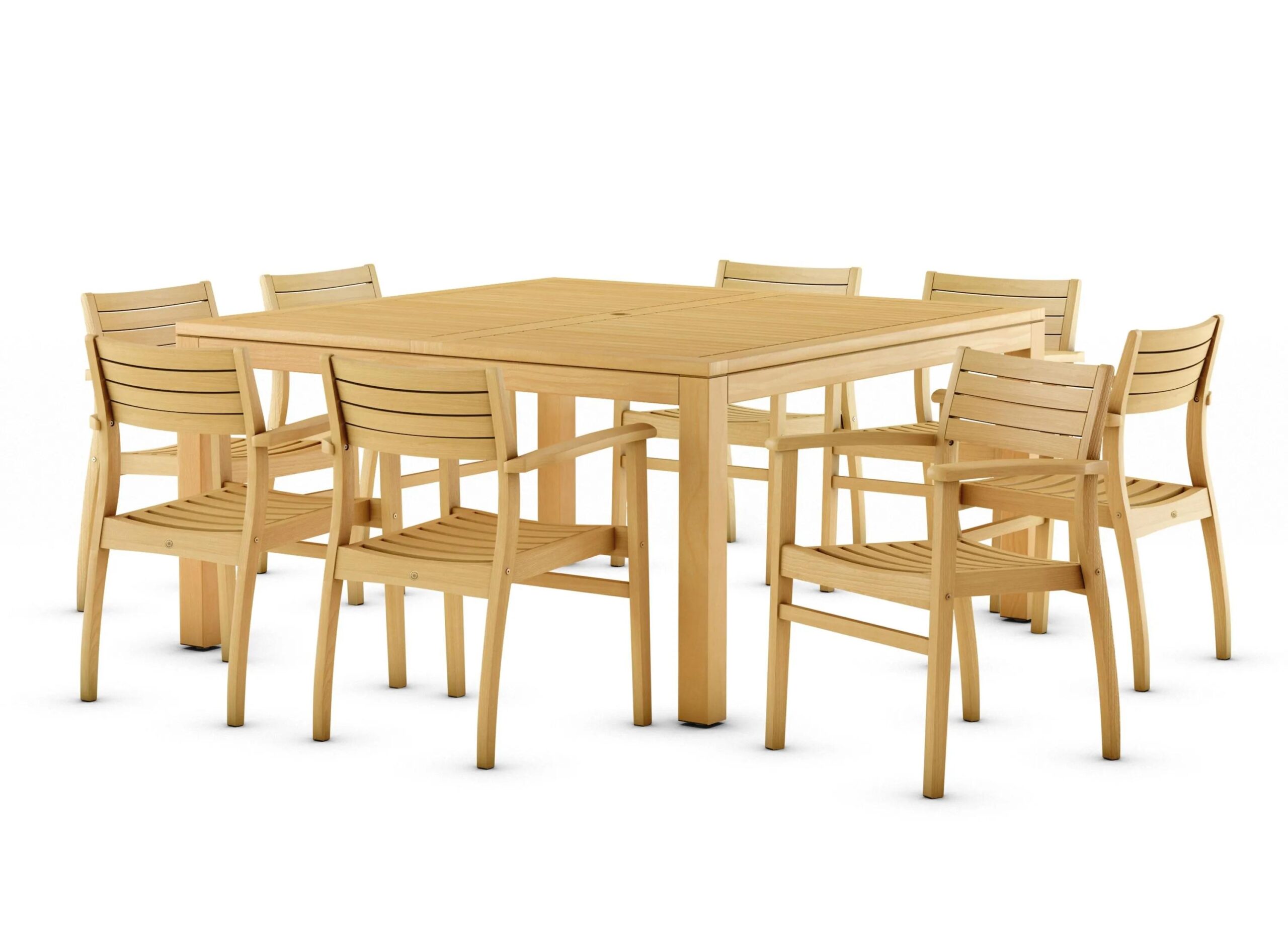 The Campos 9-pc. Outdoor Round Patio Dining Table Set focuses on contemporary and modern designs, that is perfect for any outdoor space. The patio set is made of wood materials are made of 100% FSC certified eucalyptus and certified high-quality teak wood.