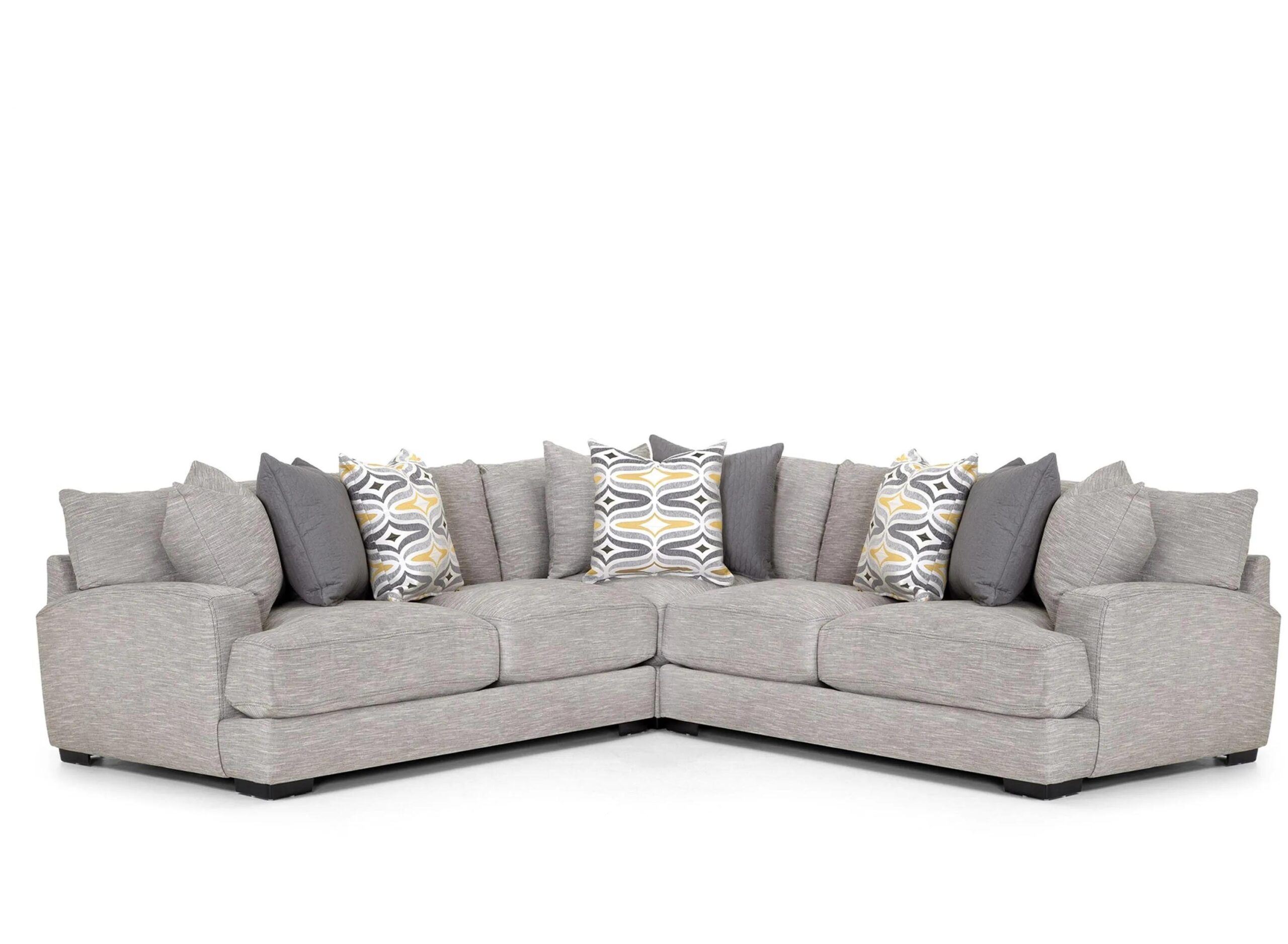 Comfortable on a grand scale, the Carter 3-pc. sectional makes the perfect cornerstone for a living space with family use at the forefront. The upholstery makes it cozy, easygoing and versatile, while the accent pillows give it a punch of graphic nostalgia.