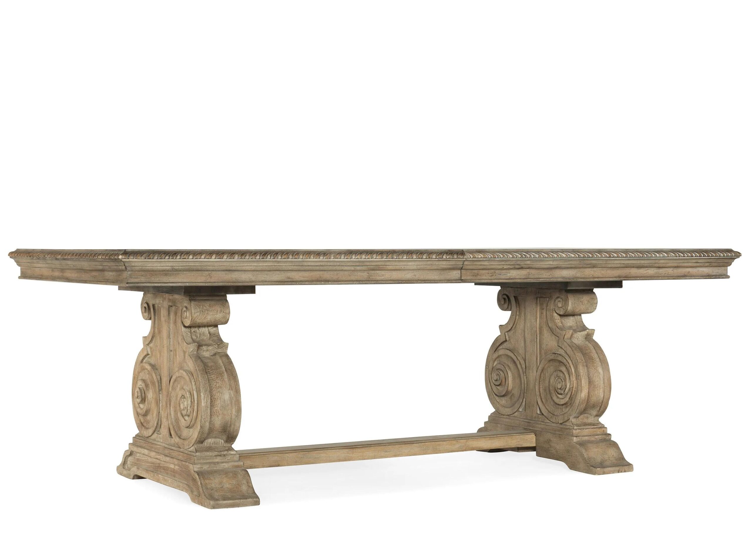 The drama of classic European design hits the heights with the grand Castella Rectangular Dining Table with a scrolled trestle base. Imagine a 12th Century French chateaux that has been brought up to date without leaving a single charming detail behind.