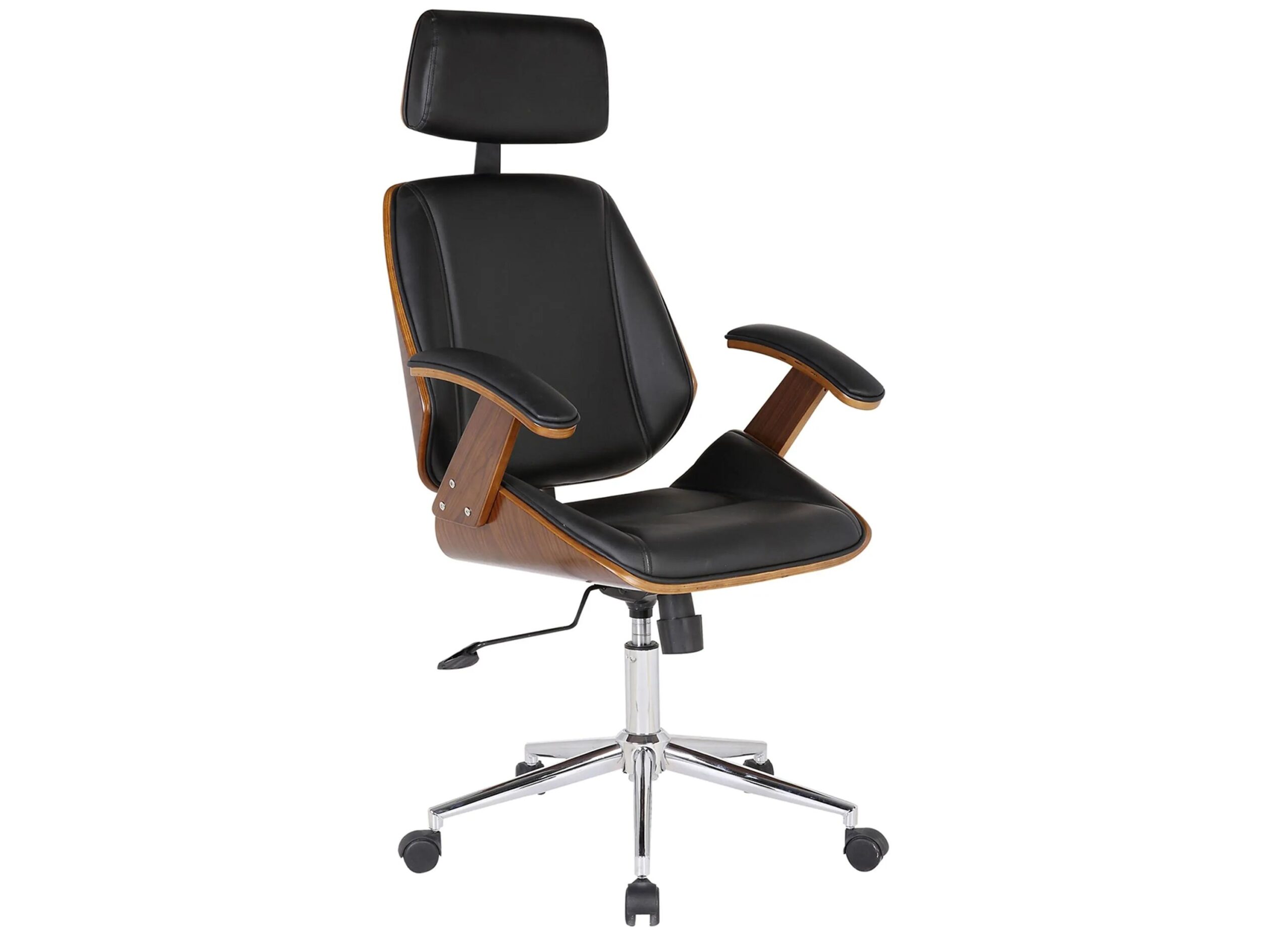The Century Office Chair is a wheeled and adjustable piece of modern furniture that is sure to liven up your contemporary home or commercial office space. The Century’s beautiful design includes a sturdy plywood seat frame, faux leather upholstered back and seat, and a durable chrome base.