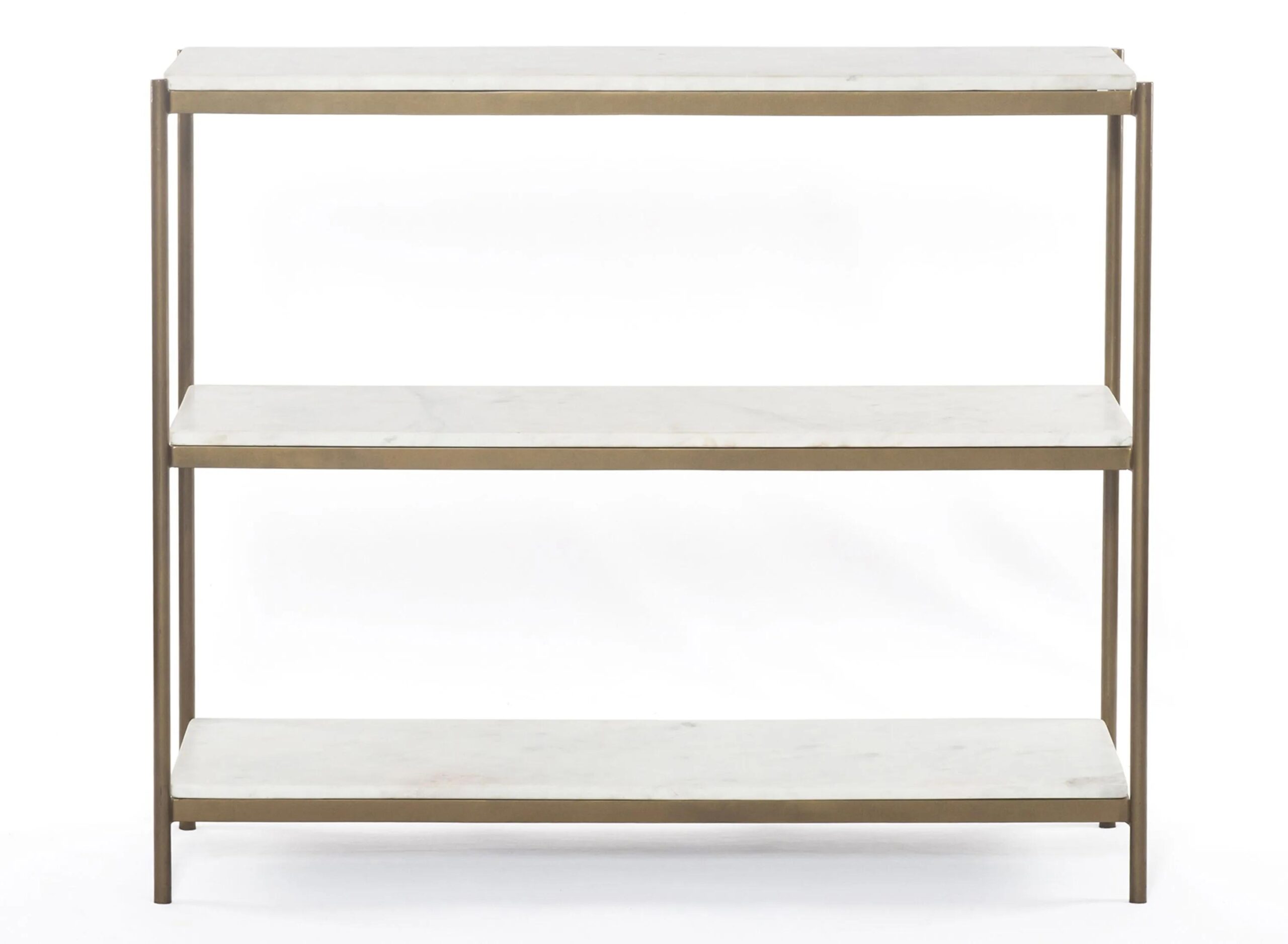 Add a pop of sophistication to any space with the Chapin Console Table. Polished white marble lays three tiers of smooth shelving for an open style with plenty of surface area. Antique brass framing places a feminine spin on console storage.