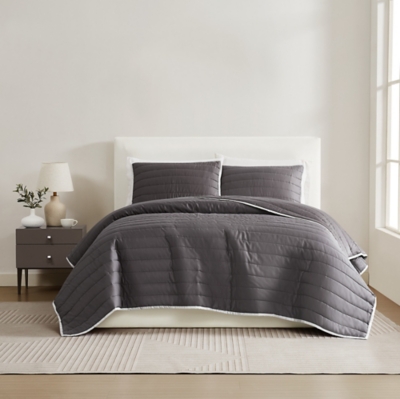 Christian Siriano NY 3-Piece King Quilt Set, Dark Gray