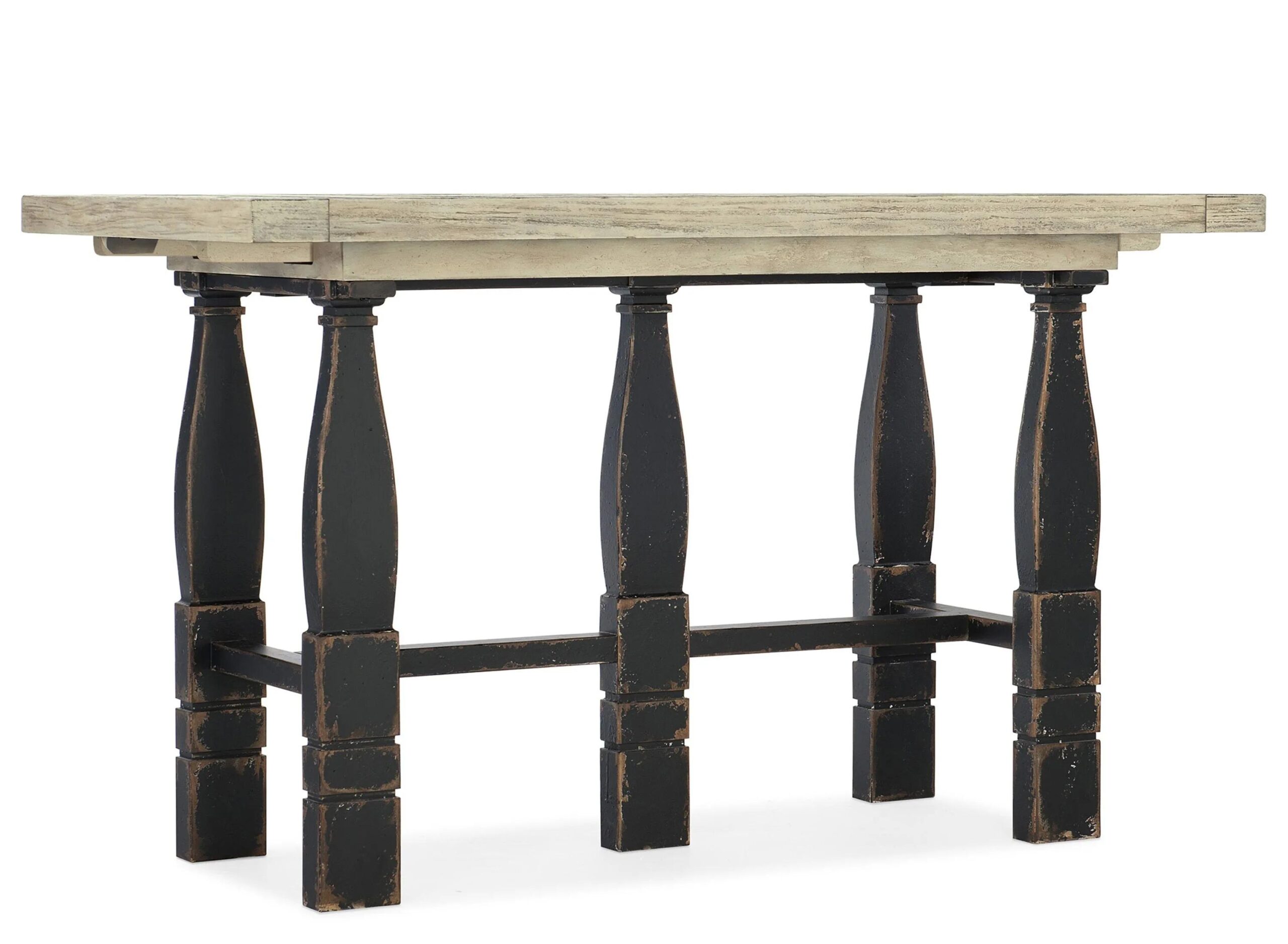 Equally at home in a European Cafe or an American Bungalow, the charming Ciao Bella Friendship Table is height adjustable, so you can use it at counter height or traditional dining height. Crafted of Poplar and Hardwood Solids and Pine Veneers, a black base contrasts with a Flaky White top.