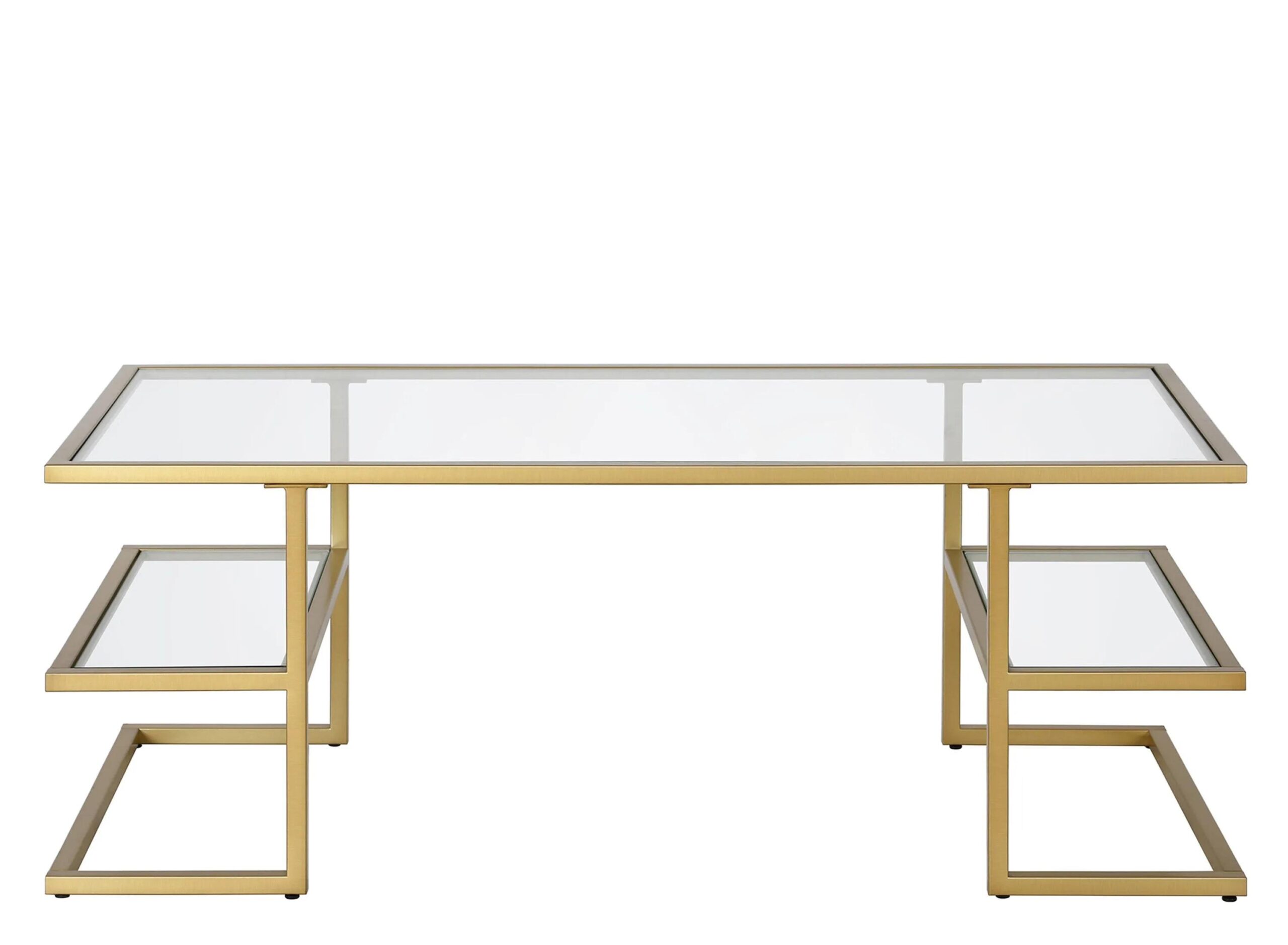 Form meets function in the design of the modern contemporary Circe Coffee Table. The two floating side shelves create extra storage possibilities, leaving plenty of open space beneath the tabletop to tuck away an ottoman or set of poufs.