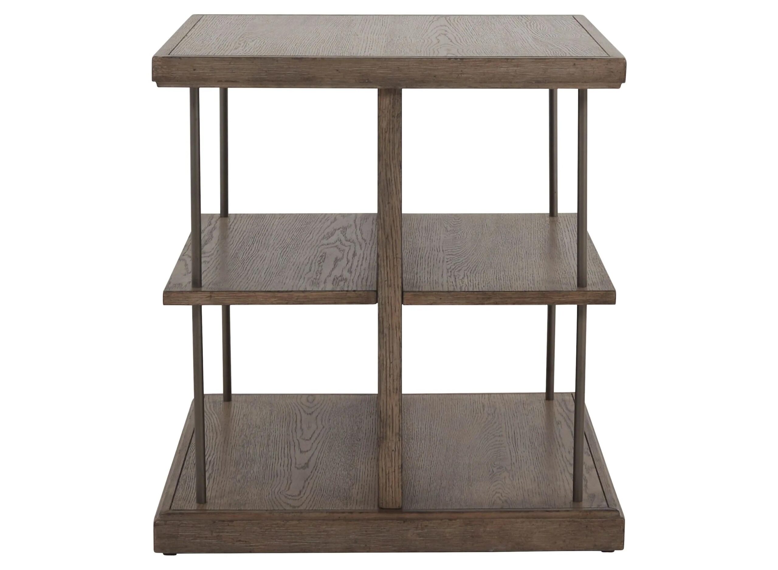 Bring a contemporary vibe into your space with the City Scape End Table with shelves. Designed with poplar wood with an antique distressed finish, it complements a variety of living room styles and palettes perfectly.