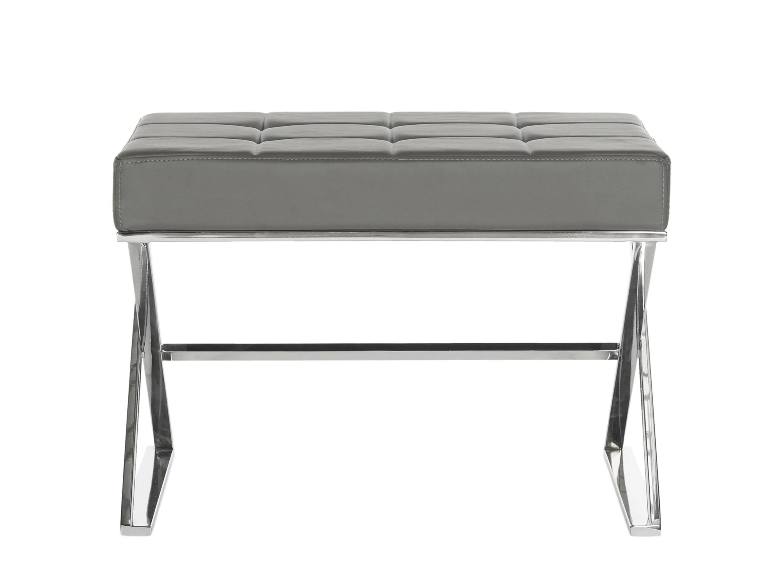 Inspired by the design classics from Bauhaus workshops, this Clara Ottoman is modern luxury at its finest. Its combination of cool grey PU leather and polished stainless steel make it effortlessly chic, ideal for extra seating or an impromptu cocktail tray.