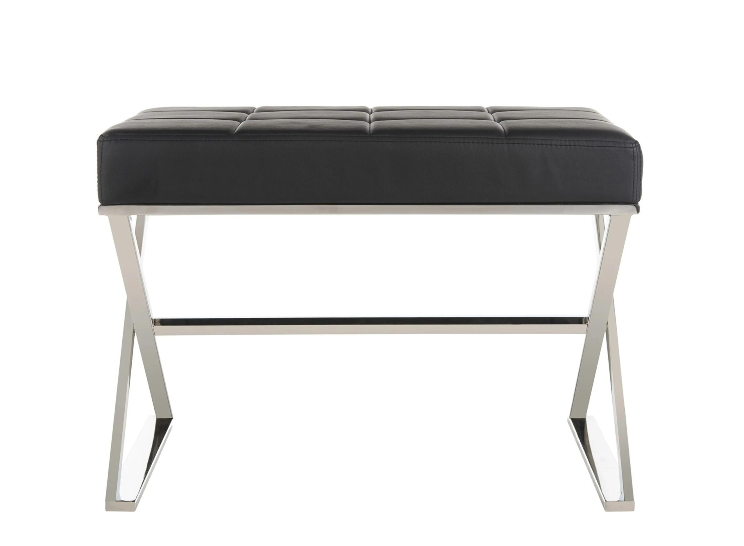 Inspired by the design classics from Bauhaus workshops, this Clara Ottoman is modern luxury at its finest. Its combination of cool black PU leather and polished stainless steel make it effortlessly chic, ideal for extra seating or an impromptu cocktail tray.