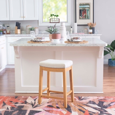 The linen stripe counter stool will add stylish seating to any counter or high top table. The sturdy wood frame has a rustic brown finish accented by a neutral striped polyester linen blend fabric seat.