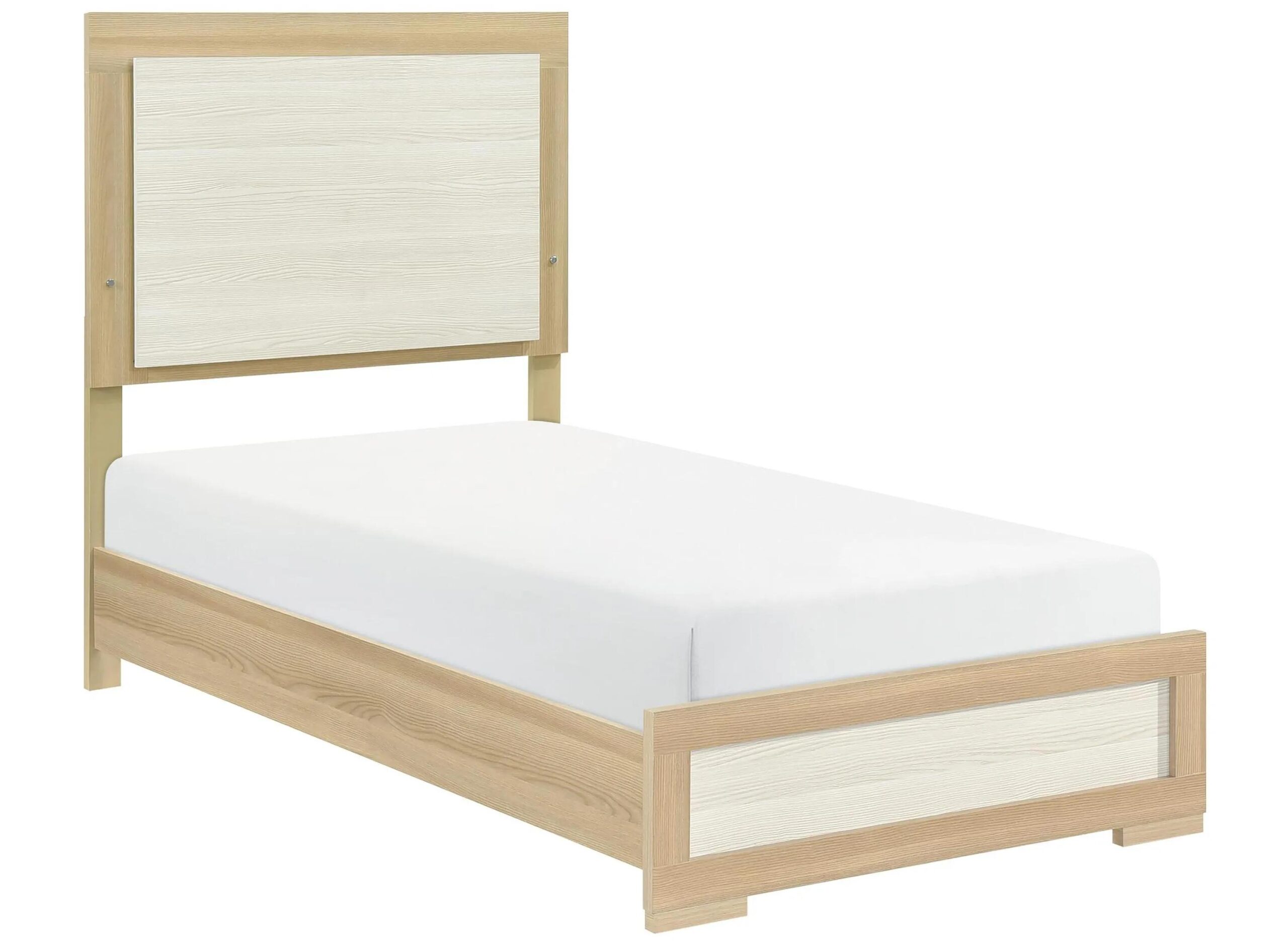 Bring a touch of fresh, modern style to your bedroom with the Clayton Bed. Featuring a striking two-tone finish in natural wood and crisp white, this bed creates a bright and inviting focal point. Crafted from a durable combination of 3D paper, premium melamine board, wood, and engineered wood, i