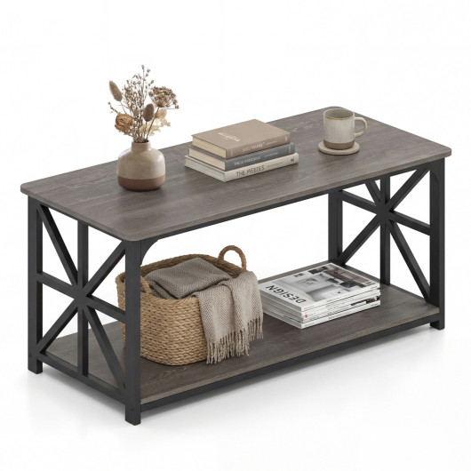 Coffee Table 2-Tier Center Table with Storage Shelf-Oak