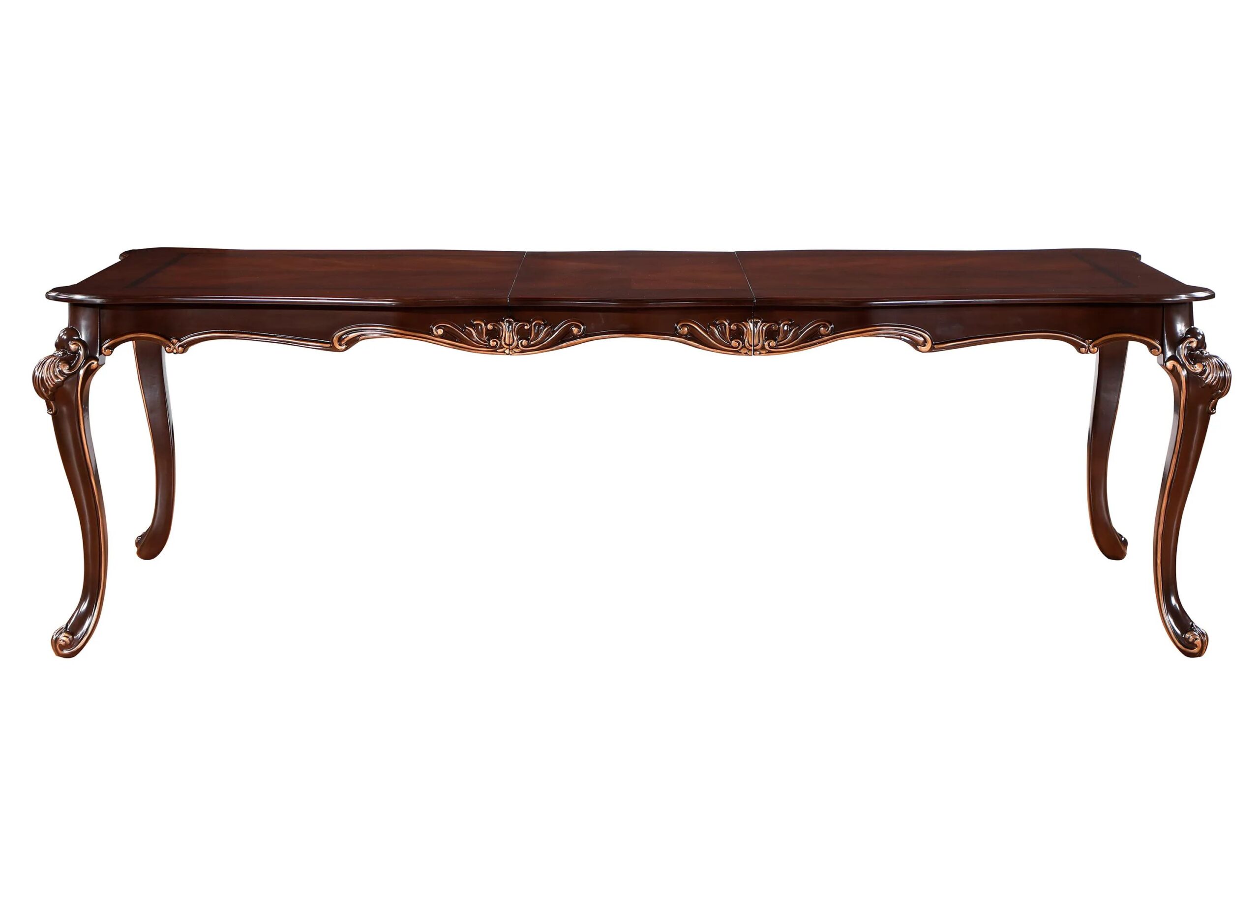 Constantine Extendable Dining Table in cherry is a masterful blend of heirloom quality and timeless design, making it the perfect centerpiece for your dining room. Crafted from solid pine and premium fancy face birch veneers, this table is built to offer lasting beauty and durability for years to