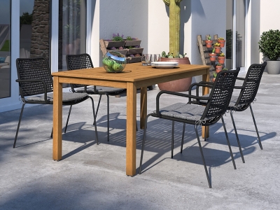 Copacabana Outdoor Rectangular Dining Table and 4 Chairs, Light Brown/Black