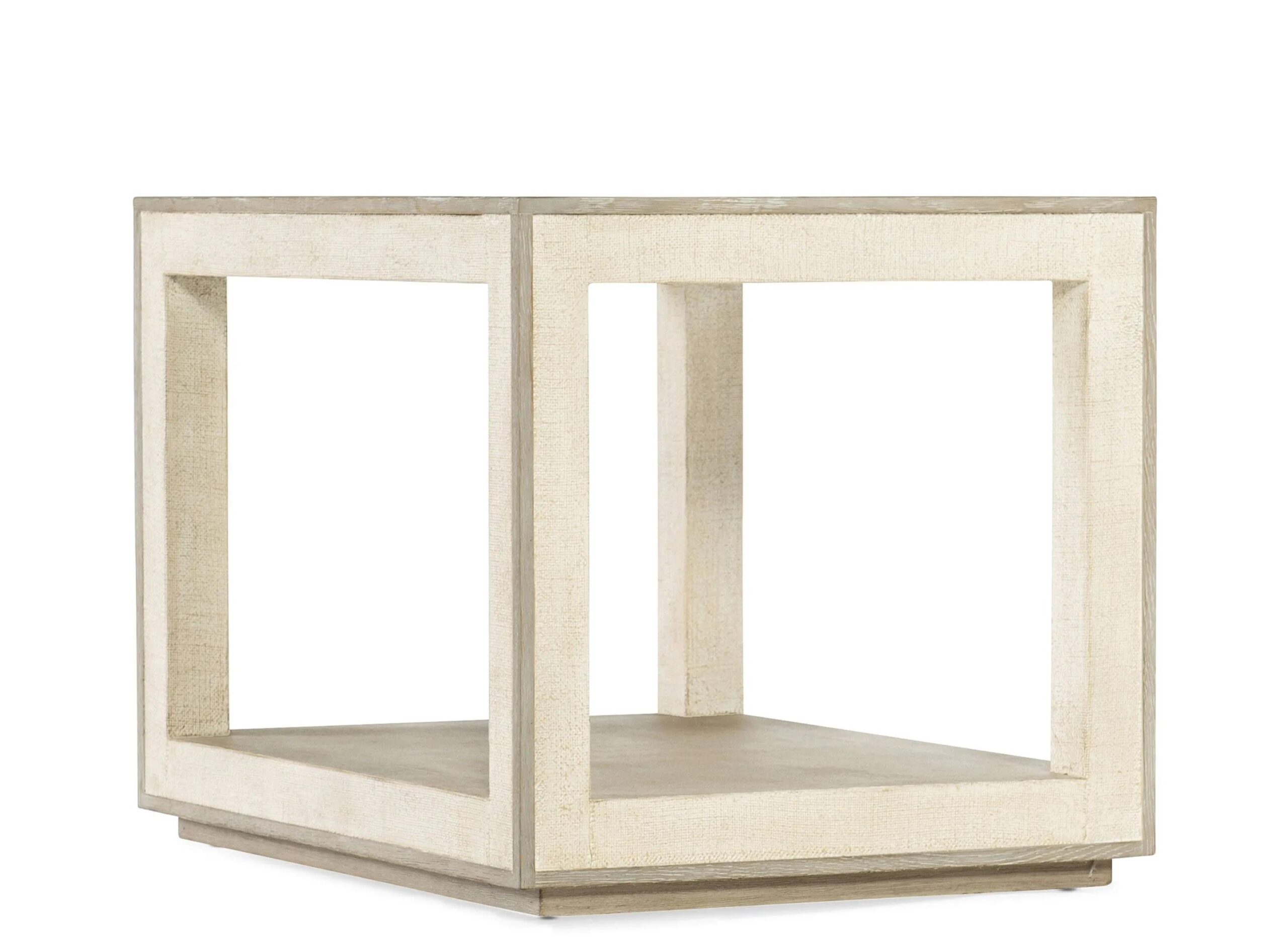 Get your Zen on with the Cora end table, combining a lacquered burlap finish with an Oak Veneer top and trim in a soft, serene taupe finish. The airy vibe and rectangle shape is a simple, stylish and practical addition to any living space.