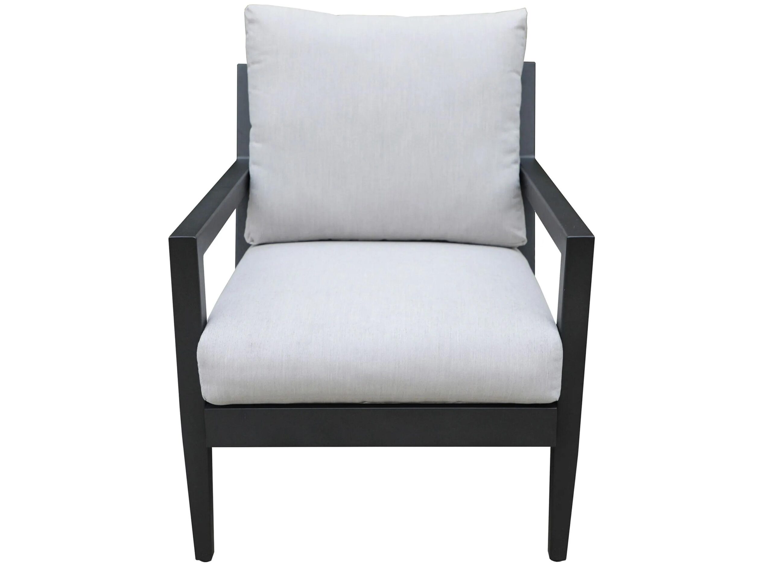 The modern, minimalist lines and dark charcoal finish of the Crescent Bay outdoor conversation collection make a refined statement in your outdoor living space. The slatted design and slightly angled back of the Crescent Bay club chair offer sturdy seating comfort, while welded aluminum frames an
