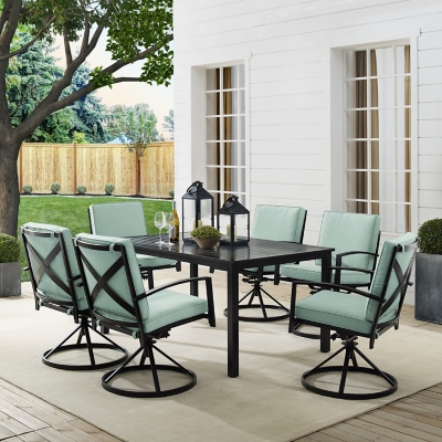 Crosley Furniture Kaplan Outdoor Dining Table and 6 Swivel Chairs,