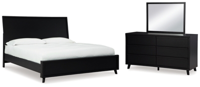 Danziar Queen Panel Bed with Mirrored Dresser, Black