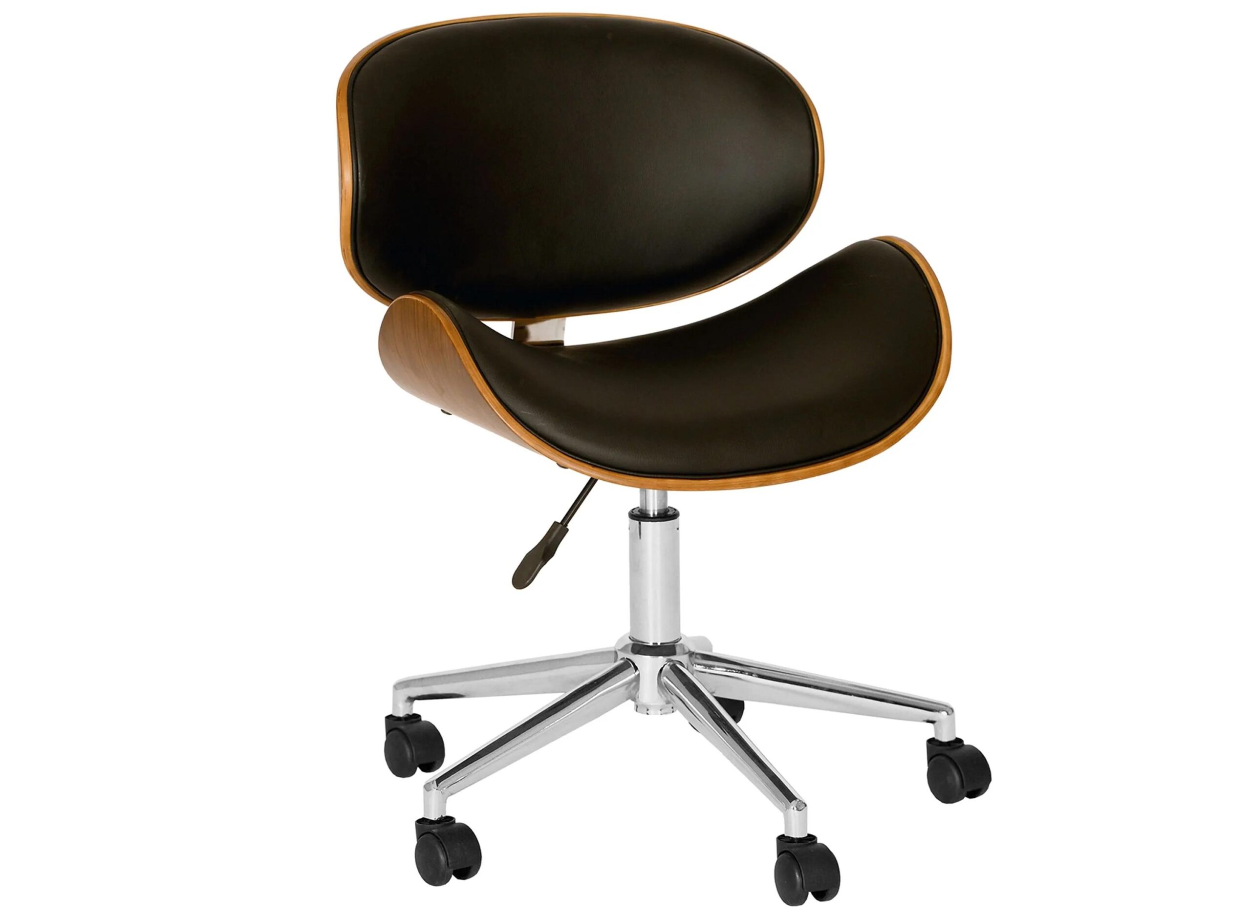 The Daphne Office Chair features a walnut veneer finish seat and black leatherette. The cushioning provides both stability and comfort, and the 360 degree swivel makes maneuvering the chair easy around the office.