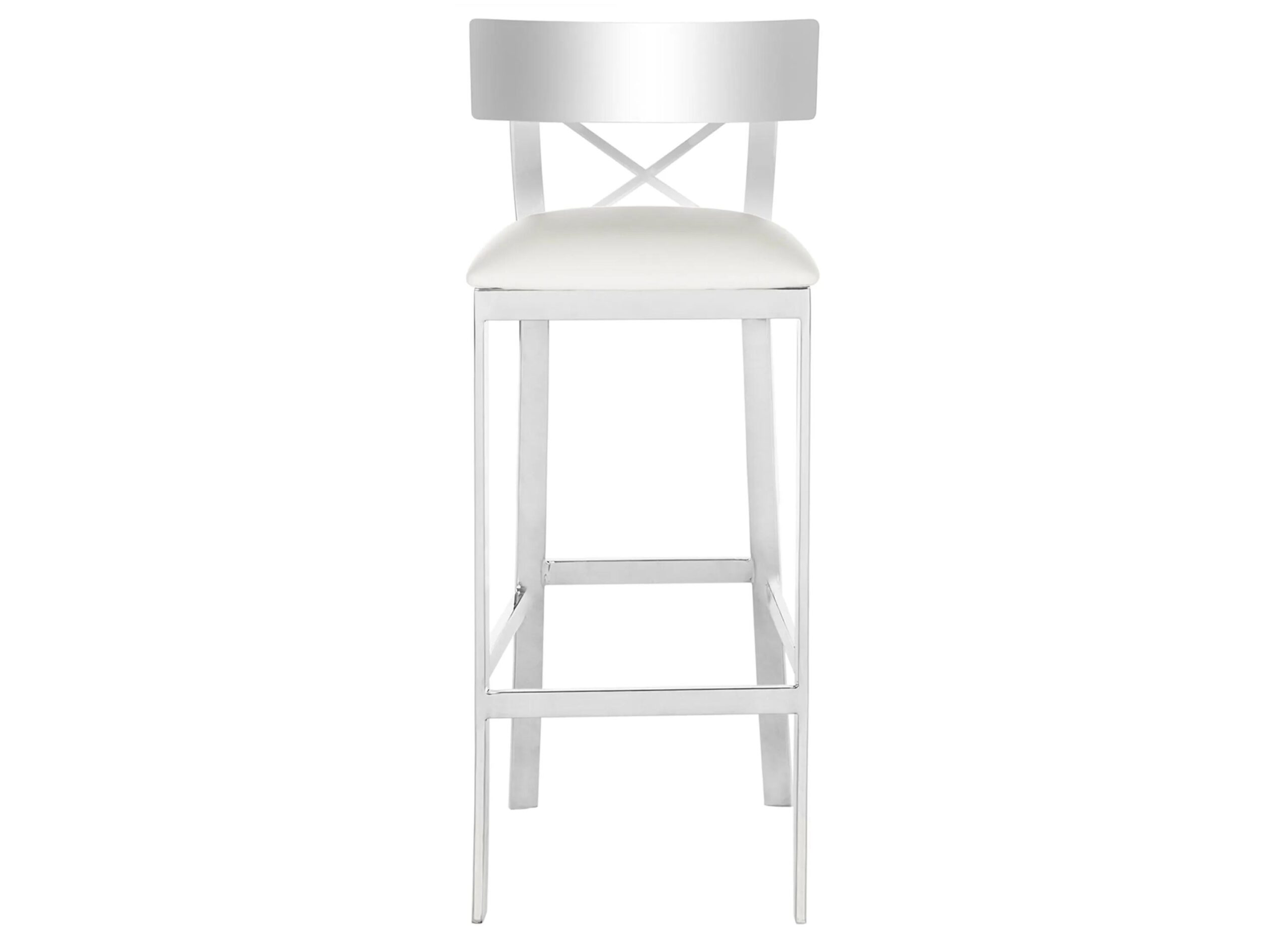 This modern Denis bar stool is at the height of fashion. Inspired by London’s legendary art deco bar, its polished stainless steel finish is as smooth as Bond’s martini. With cross back detail and smooth white leather style upholstery it’s always in good taste.
