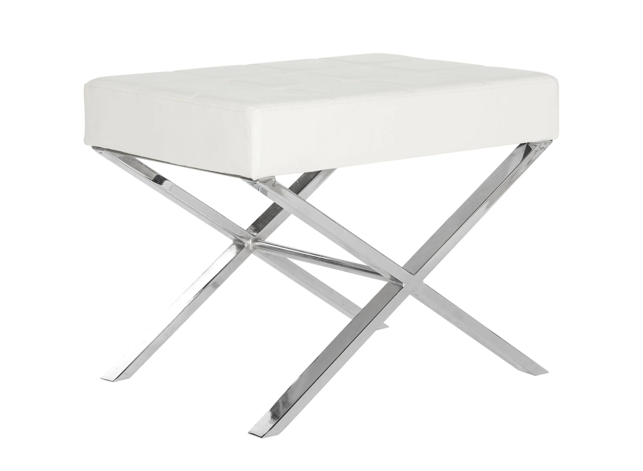 The modern minimalist beauty of this Diva Ottoman is a nod to the refined style of design legend Mies van de Rohe’s Barcelona chair. The luxurious white PU leather and smooth chrome finish bring cosmopolitan style to any room.