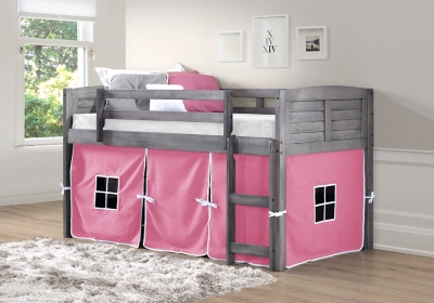 Donco Kids Louver Twin Loft Bed with Tent, Antique Gray/Pink