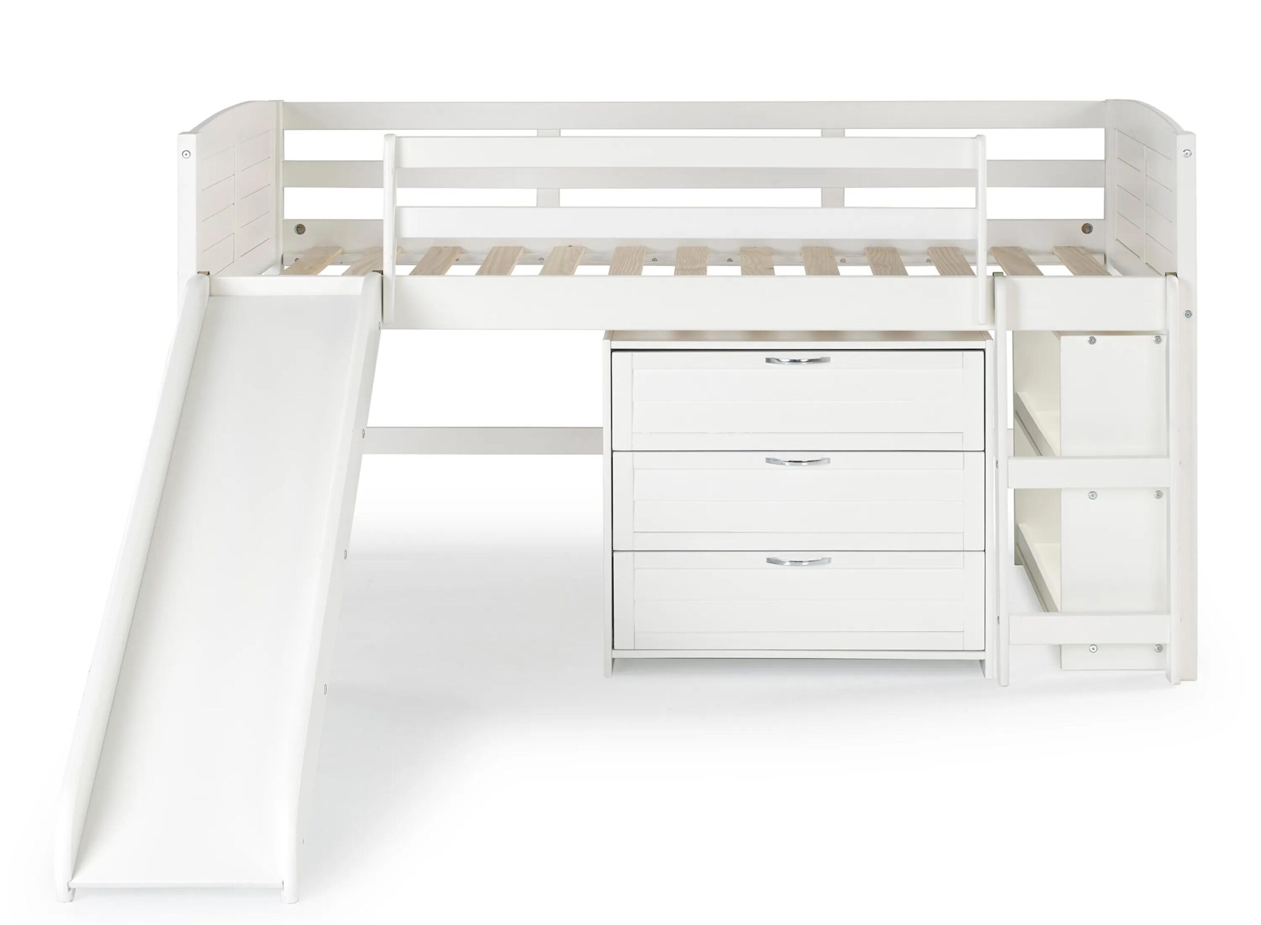 Donco Louver Low Loft Bed with Slide weaves timeless charm and functionality into one splendid package. Your little one will adore the louvered design, bringing warmth and style to their space. Our mattress ready slat system makes this bed perfect for ease of assembly, eliminating the need for a