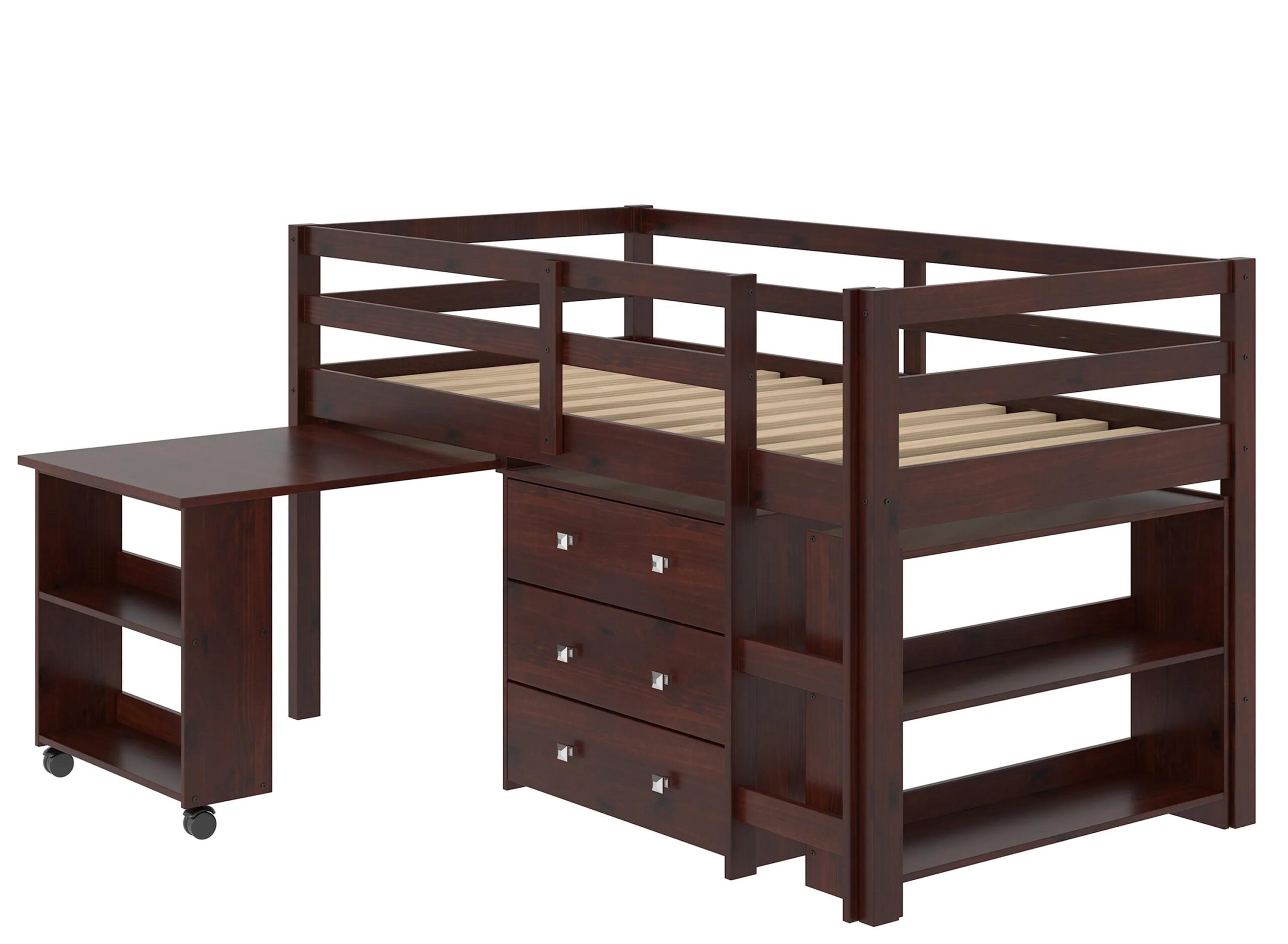 Donco Low Loft Bed encapsulates shared family values, offering a space-saving haven for young scholars. A built-in writing desk kindles creativity, while a 3-drawer chest embraces their wardrobe with love.