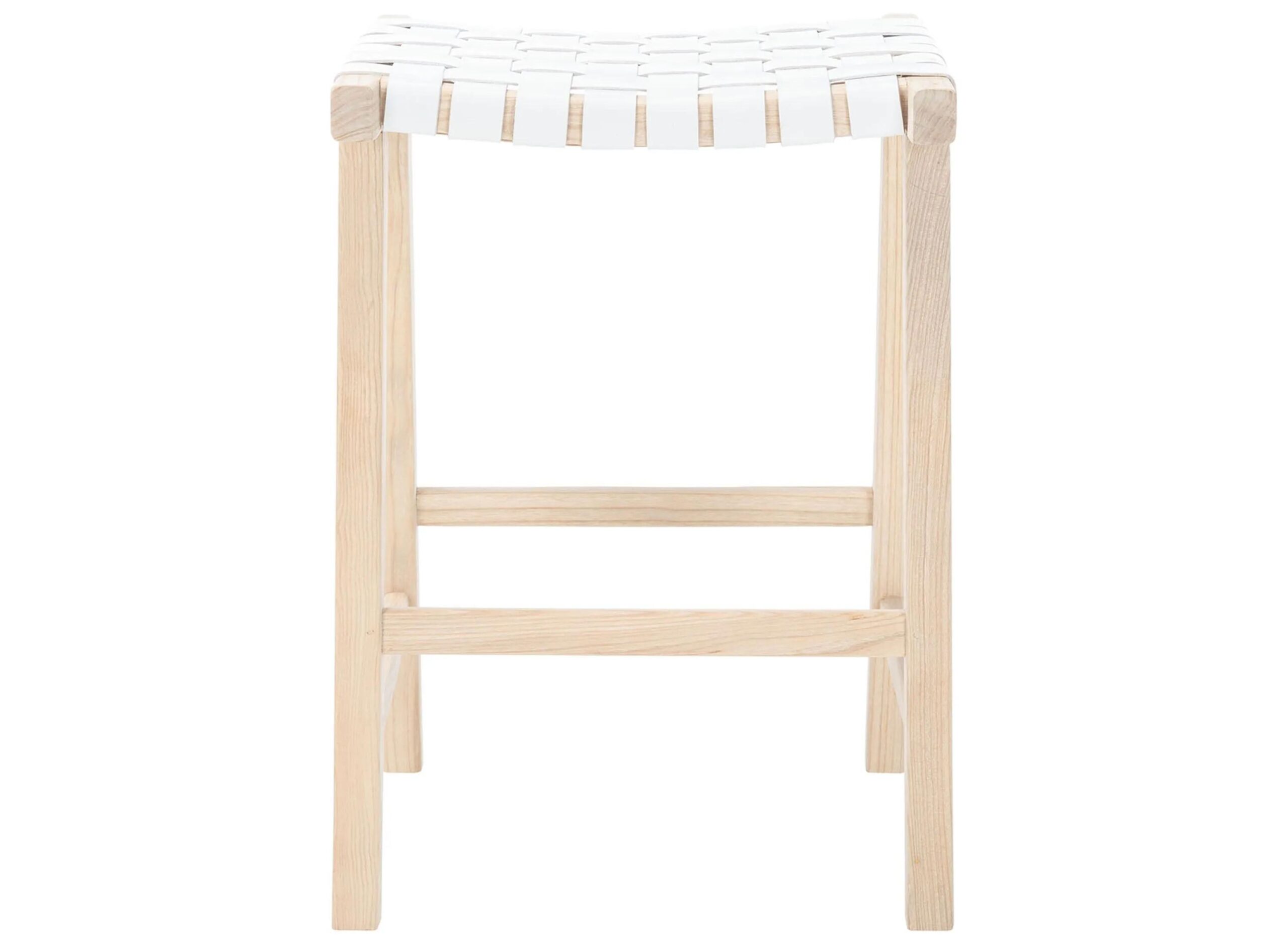 This Dylan Rectangle Counter Stool overflows with airy contemporary charm, perfect for giving high style seating areas a touch of coastal ambiance. Dylan’s white woven leather seat provides beautiful decorative contrast to its natural sungkai wood frame while complementing its chic open geo