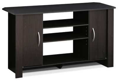 Entertain an utra-modern approach to style with this sleek TV stand. Espresso/black finish is a crisp complement to contemporary spaces. Mix of open and closed storage space simply makes sense. Furinno