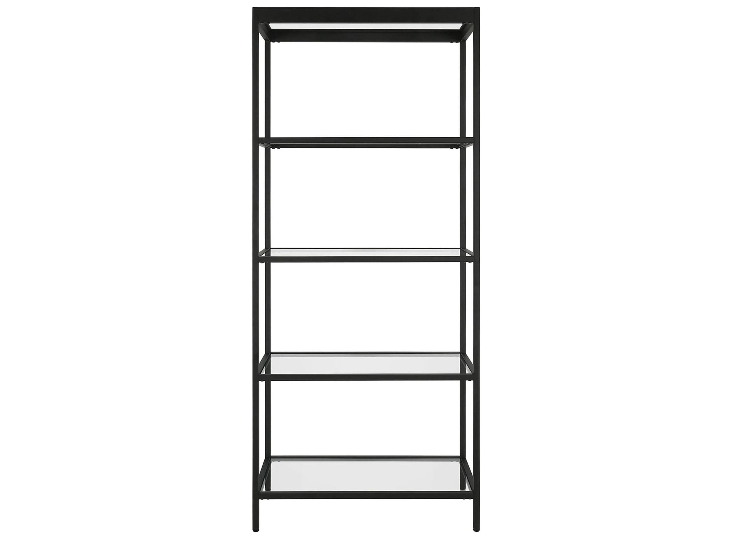 Clean, minimalist lines and sturdy tempered glass make this Eider bookcase the perfect storage space in any room. Proudly display your book collection, magazines and more on the 5 tiers of shelves. The streamlined look and neutral metallic finish pairs seamlessly with your existing color scheme a