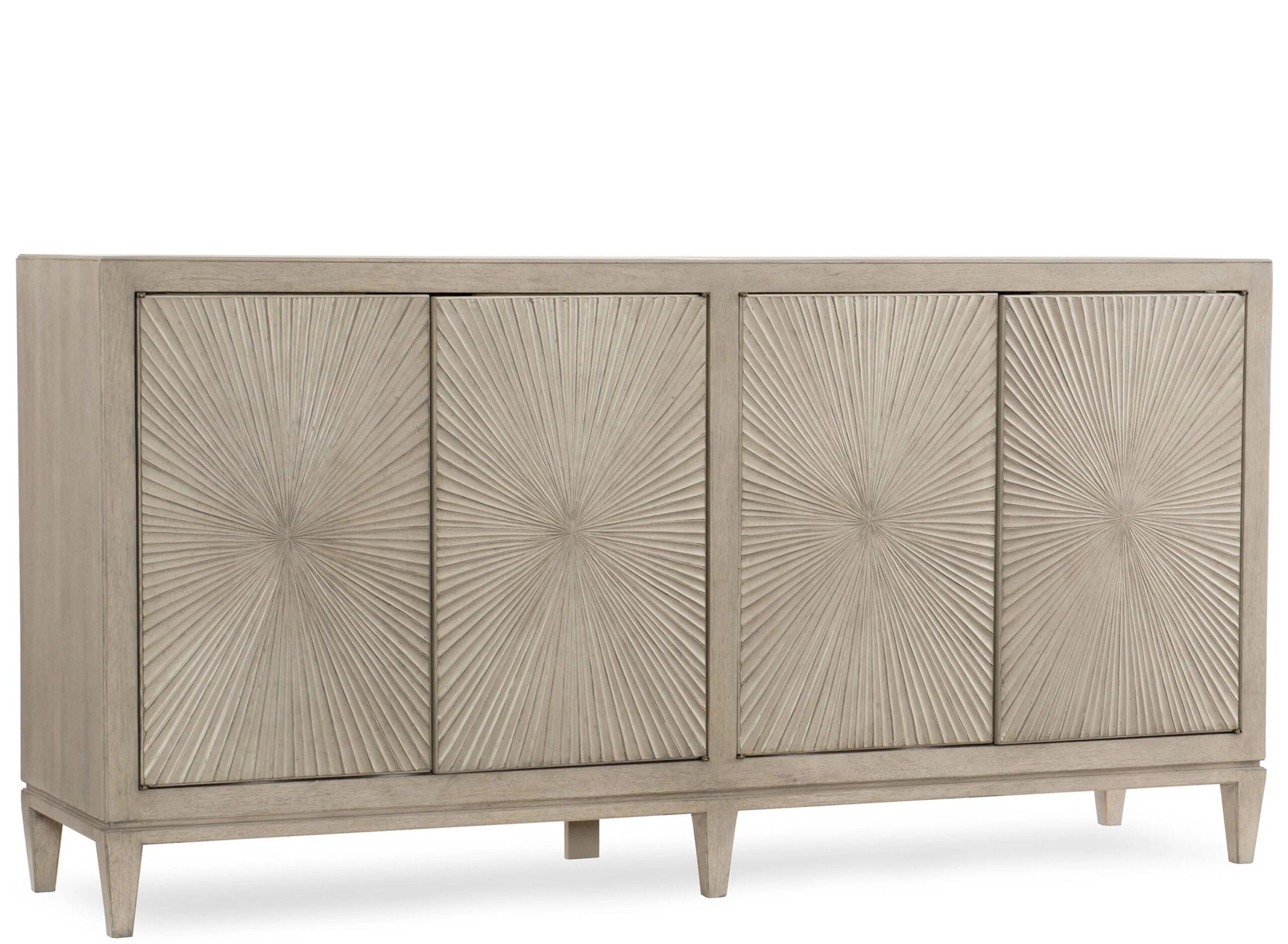 With the stunning textured starburst pattern on the doors, you will want to show off the Elixir Buffet throughout your home. Use it in the hall as an entry piece, in the dining room as a buffet, or use this TV-ready piece in the family room as an entertainment center or console.