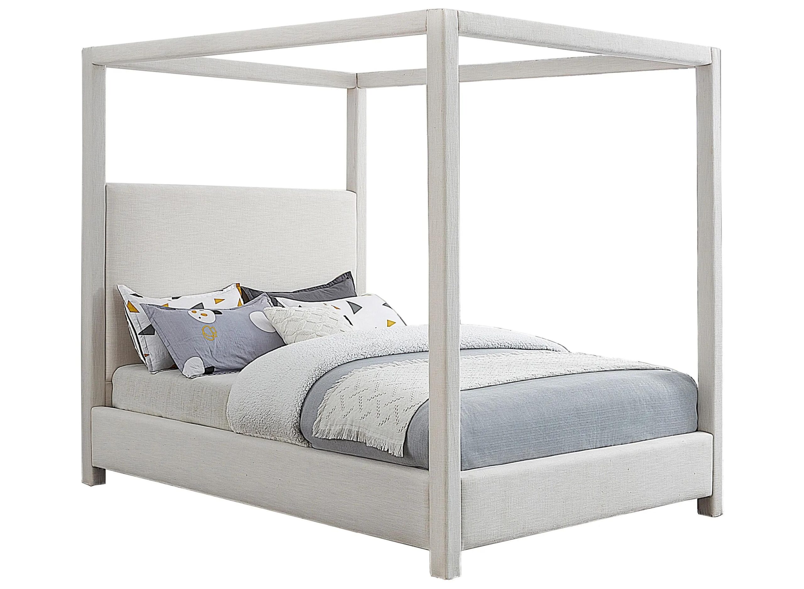 Get plenty of Z’s when you sleep in this Emerson Bed. This canopy bed is fit for a king, with four posts providing a luxurious frame for your mattress. Its mid-century modern design and rich linen textured fabric gives the bedframe a cozy feel, making it a wonderful addition to any sleeping