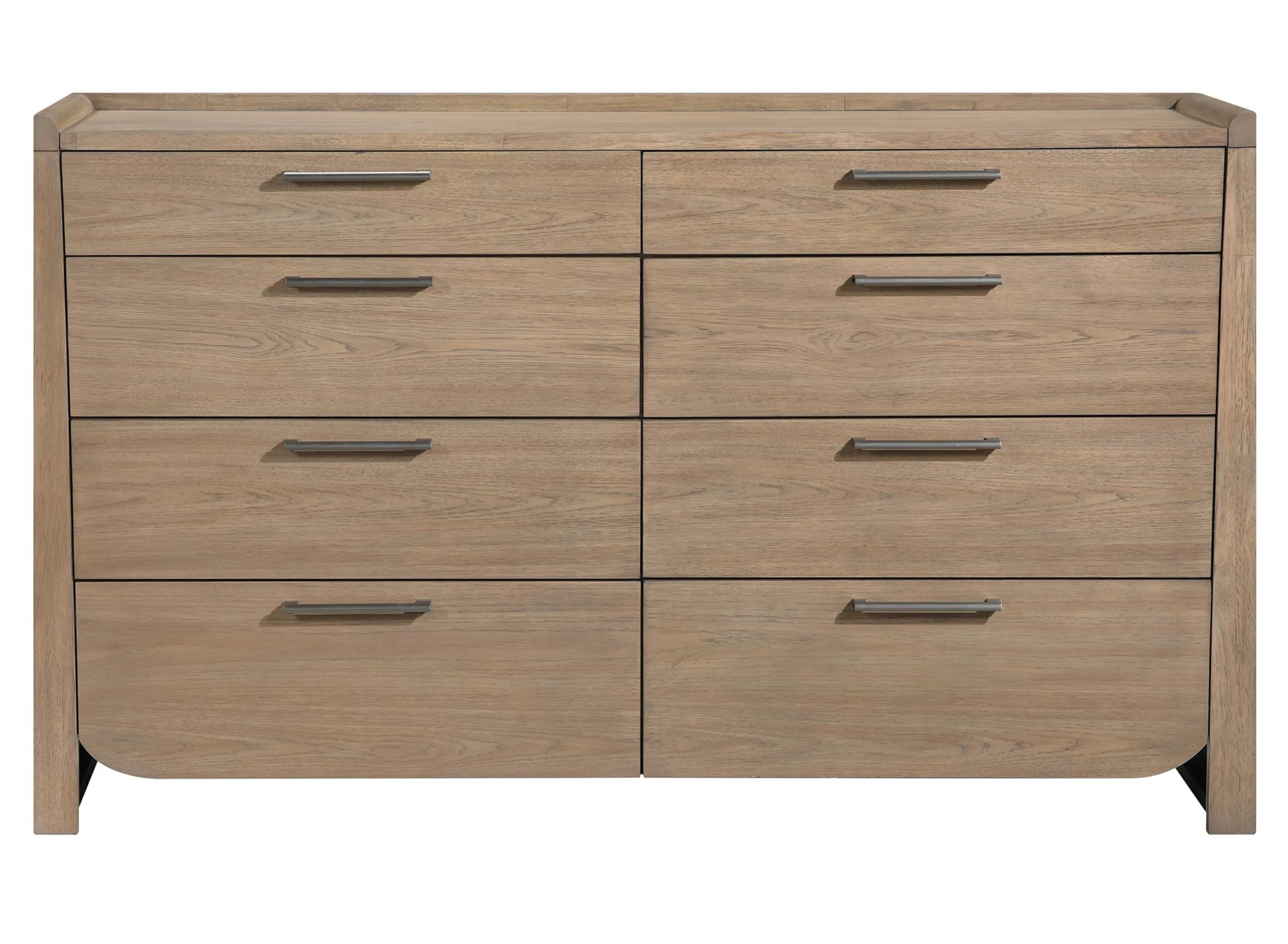 Introduce sophisticated storage and contemporary style to your bedroom with this Emmett Dresser. Crafted from a durable blend of hickory veneer, wood, and engineered wood, and showcasing a chic light brown finish, this dresser offers both exceptional aesthetics and lasting quality.