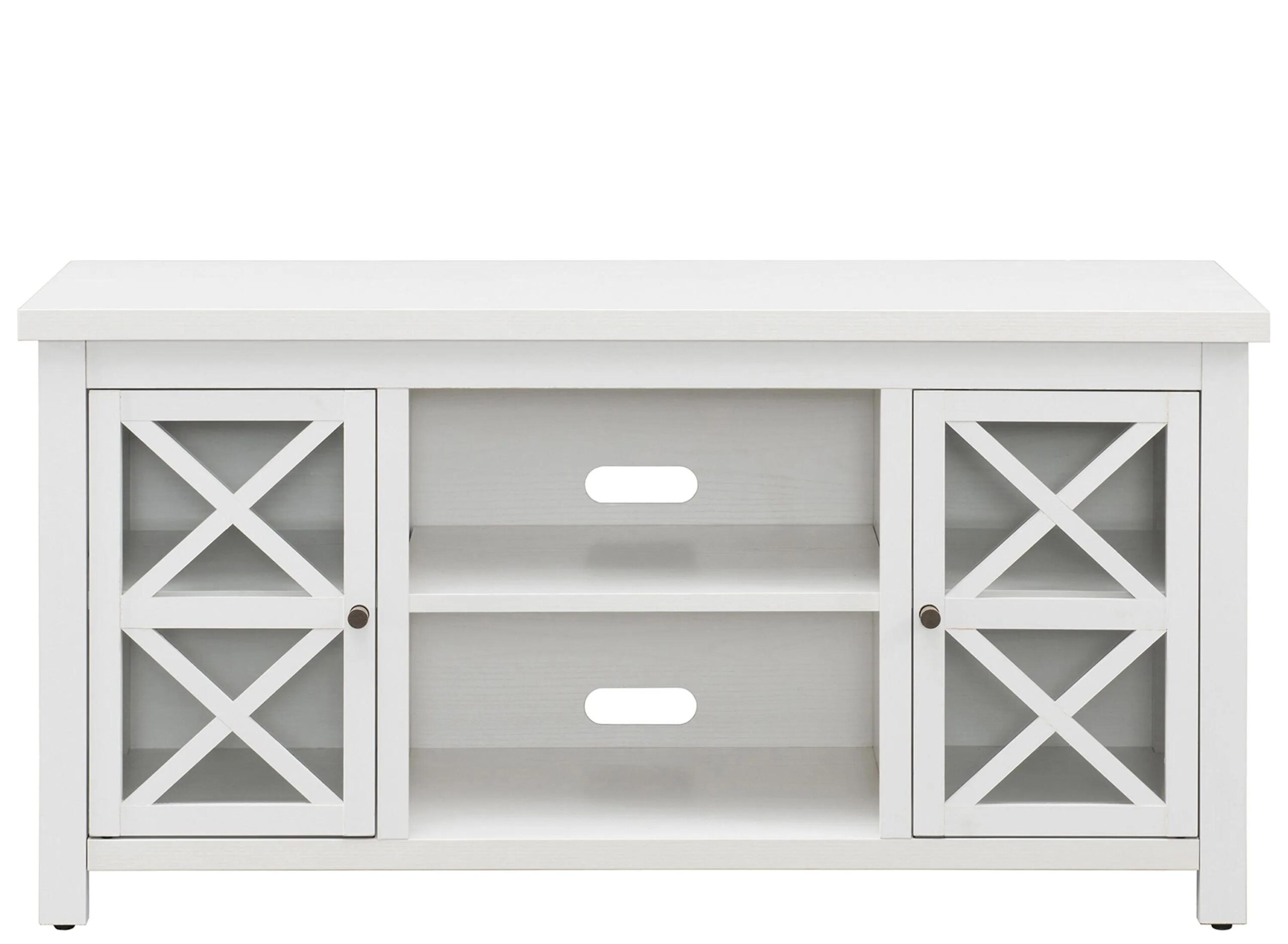 Combine functionality and on-trend design with this sturdy Eve TV stand. Its rich wood tone creates a warm neutral palette that will blend seamlessly into any color scheme, while its crisscross-accented cabinet doors add a touch of modern farmhouse whimsy.
