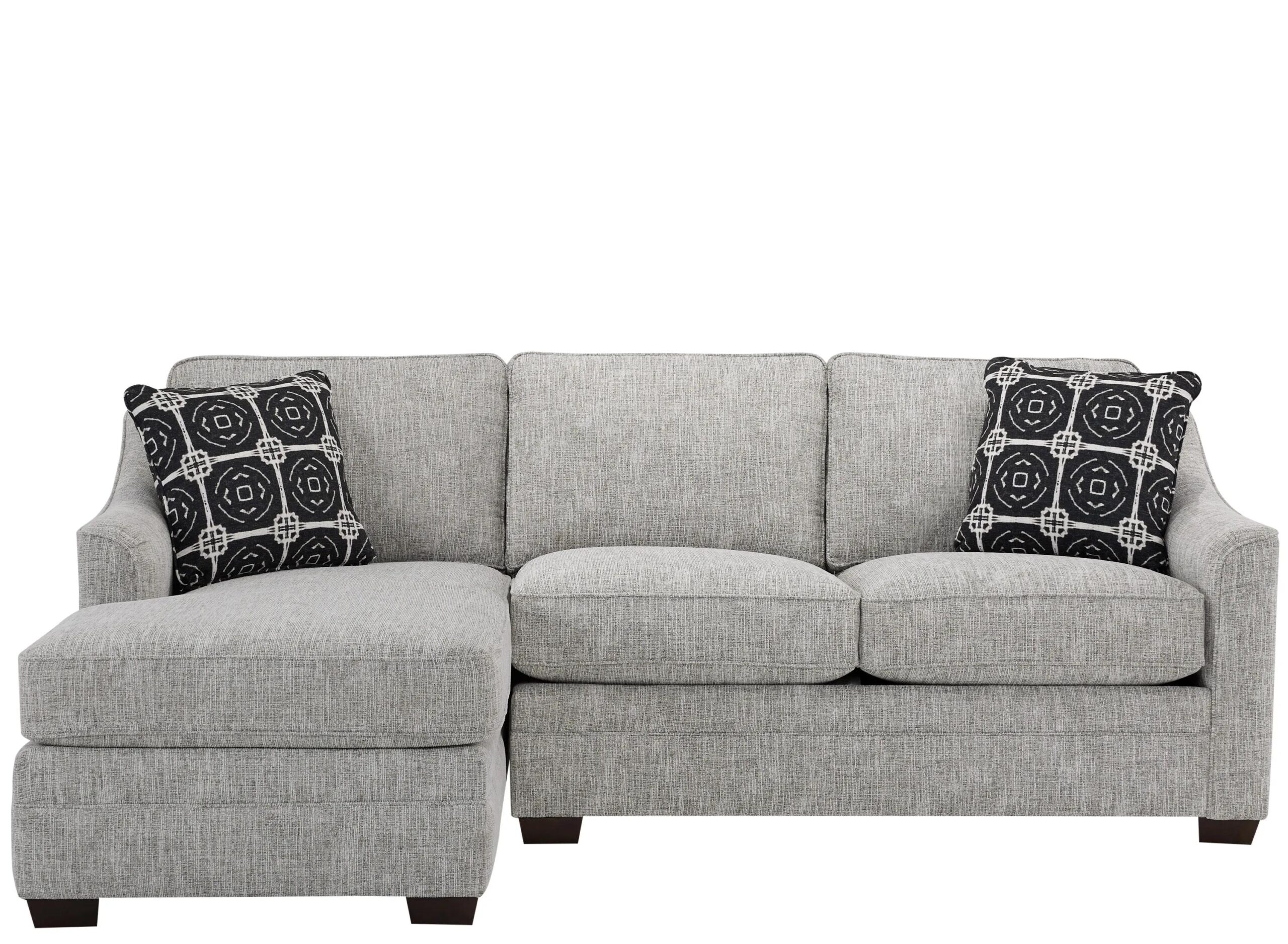 A standard sectional gets an upscale update in the Fairhaven collection ,with options for conversation corners, chaise lounging, or both. Featuring a transitional style with cool neutral upholstery, the Fairhaven 2-pc.