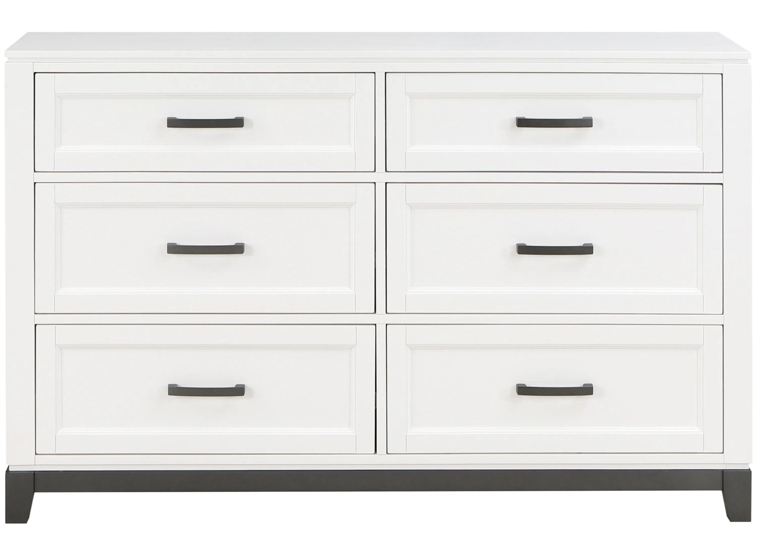 The Faustina Dresser blends transitional lines with rustic styling to create an elegant addition for your bedroom. The dresser features a white finish while metal bar hardware accents the picture frame drawer fronts of the dresser.