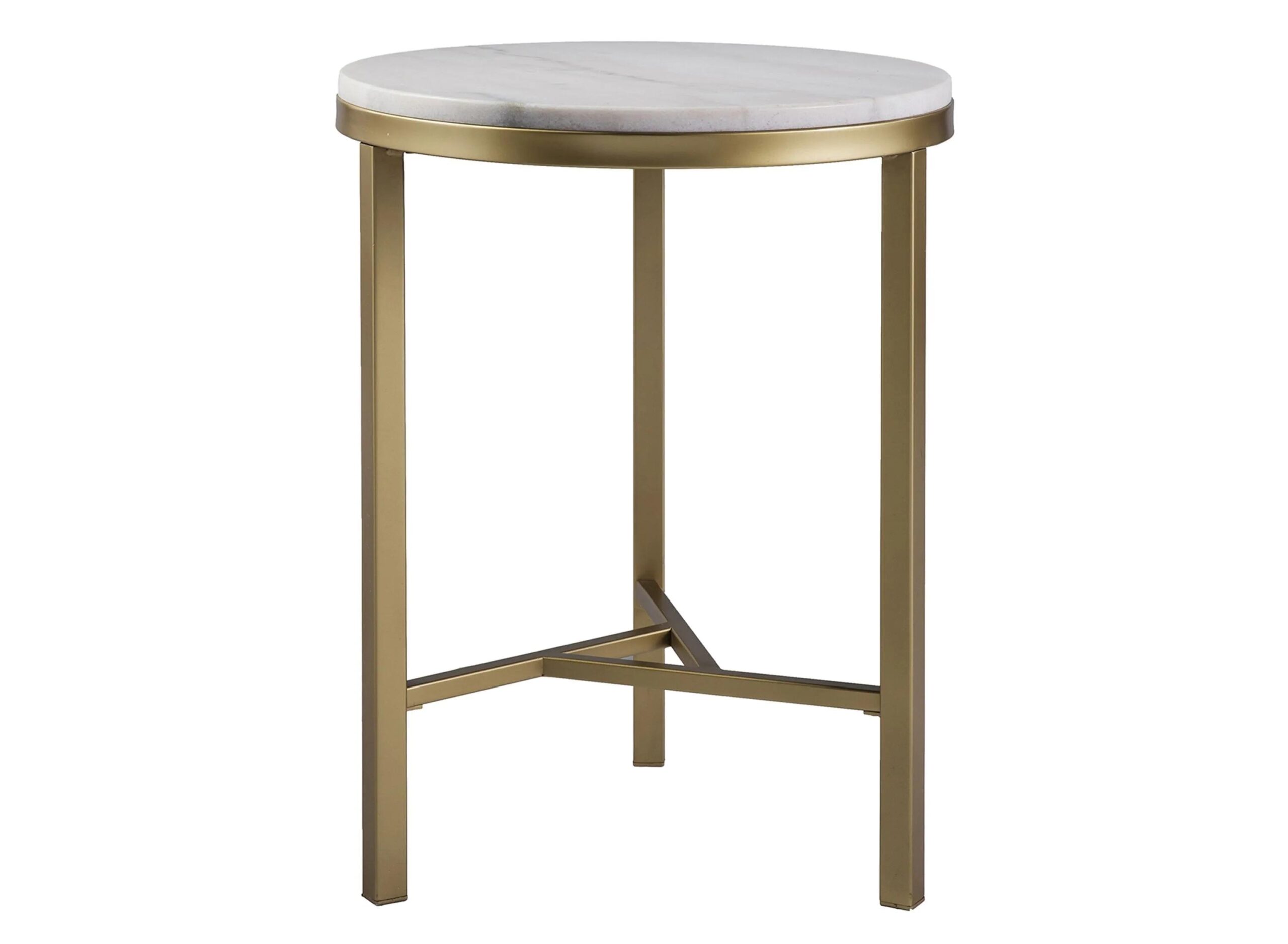 The Filey Marble Side Table provides a round slab of ivory marble rests atop a simple, modern, metal frame that basks in champagne brilliance. Each piece of marble features elegant gray veins that differ with every slice, making yourtable unique, just like you.