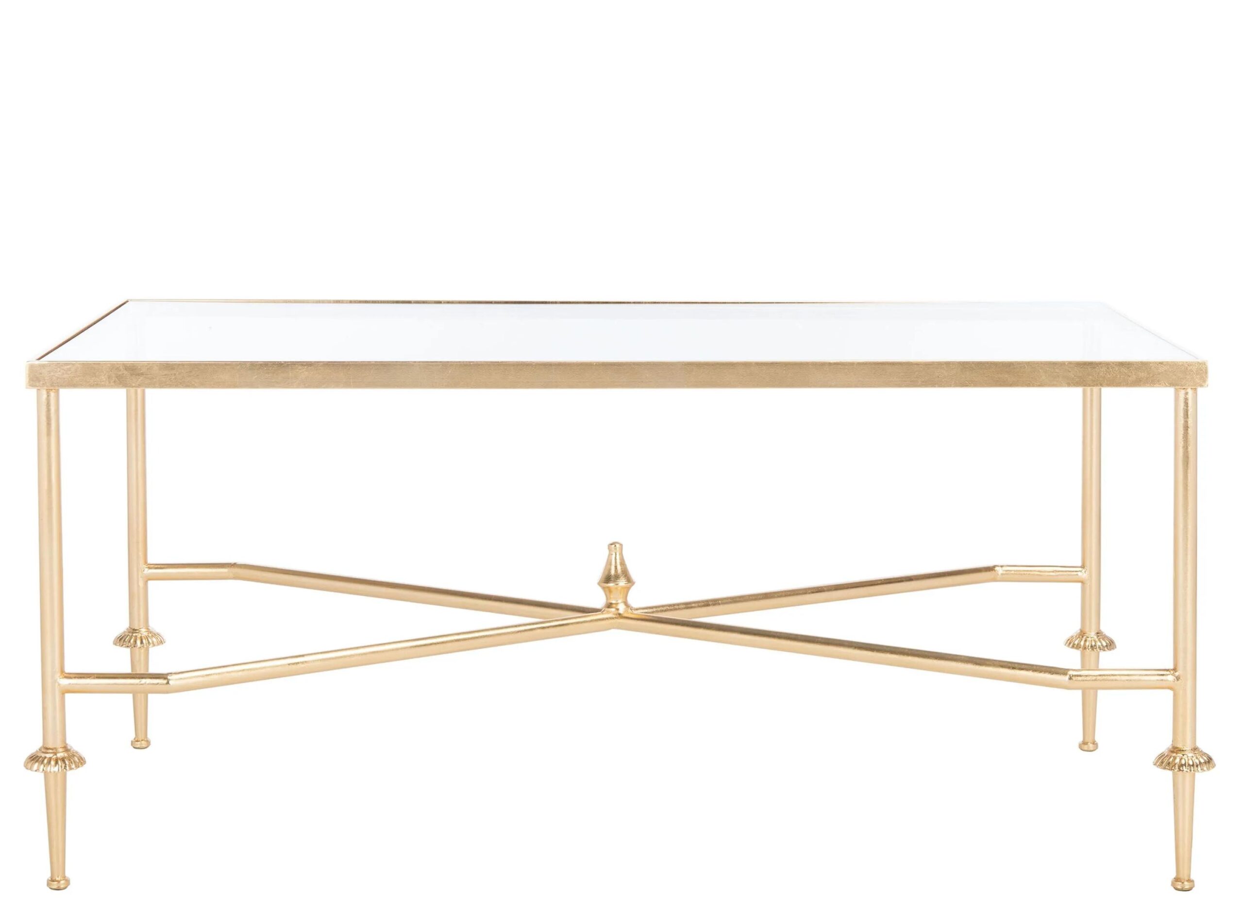 Victorian elegance meets contemporary sophistication in this striking Flyte Coffee Table. Flyte flaunts a finely detailed finial on its trestle and sculptural accents on airy slender legs, a gold leaf finish glimmering glamorously beneath a smooth glass top.