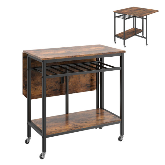● Space-saving foldable design for compact storage● Sturdy metal hinges of the drop-leaf tabletop ensure smooth expanding and folding● 5 universal casters (2 with brakes) for effortless movement and secure positioning● 8-bottle wine rack and bottom shelf for a perfect storage solution●