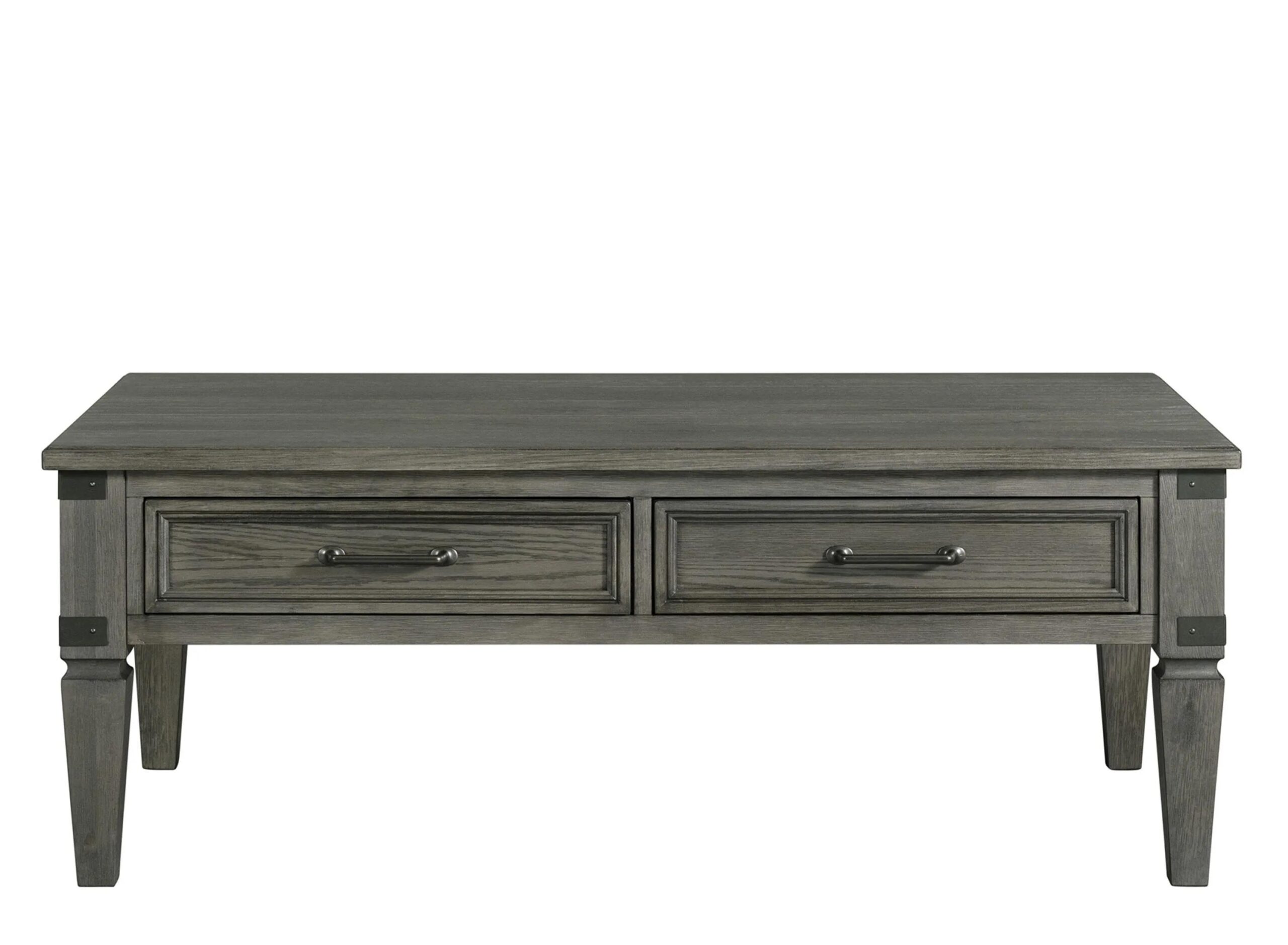 The Foundry Living Collection is constructed from oak veneer and select hardwoods and has a wire-brushed pewter finish. Two sizes of stands and four accent Tables are available to meet your exact living room needs.
