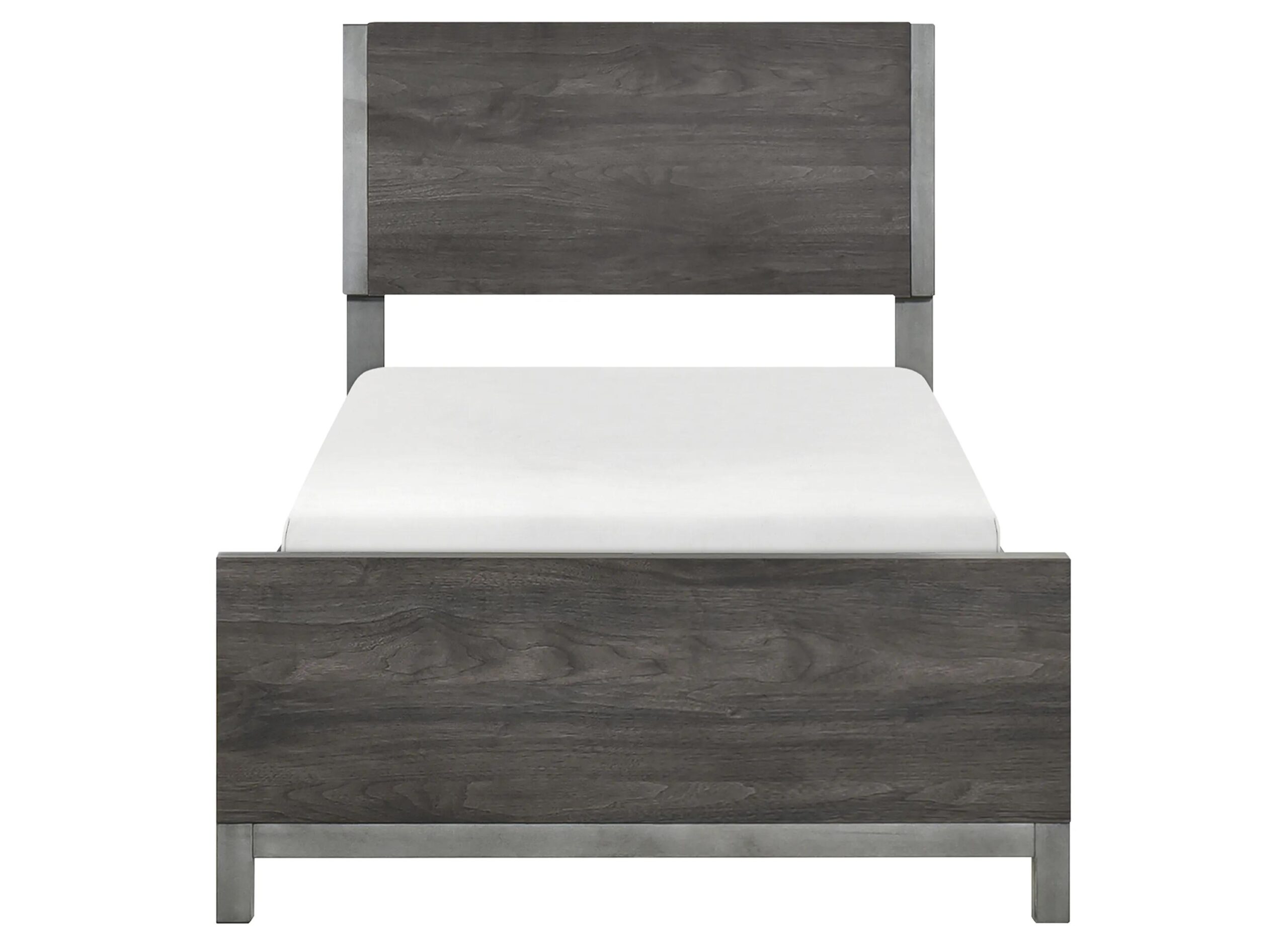 The sleek design of the Frado Bed pairs clean lines with modern convenience to create a style that will be the perfect palette for your design aspirations. The low-profile panel bed features painted metal-finish banding on the headboard’s sides and the footboard’s base rail, creating