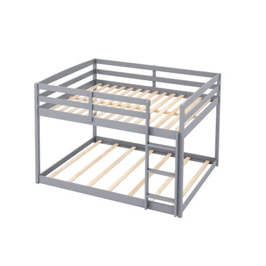 Full Over Full Bunk Bed Low-to-ground Bunk Bed-Gray