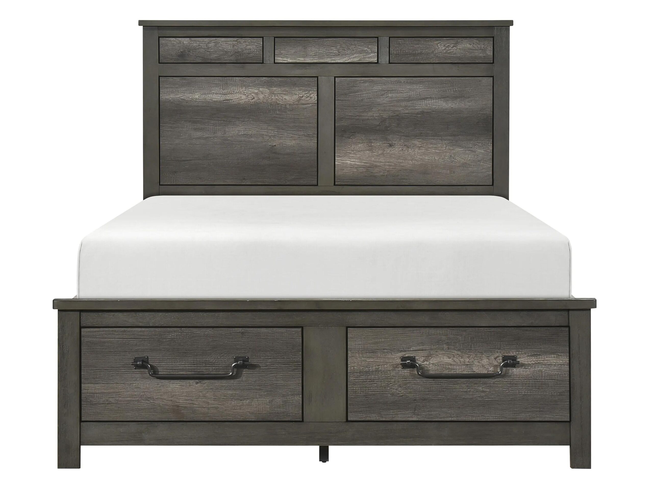 Subtle design characteristics lend hints of rustic, industrial and transitional aesthetics to the classic look of the Gabe Platform Bed w/ Storage. The gray finish of the melamine laminate’s faux wood lends durability to the rustic finish of the bed.