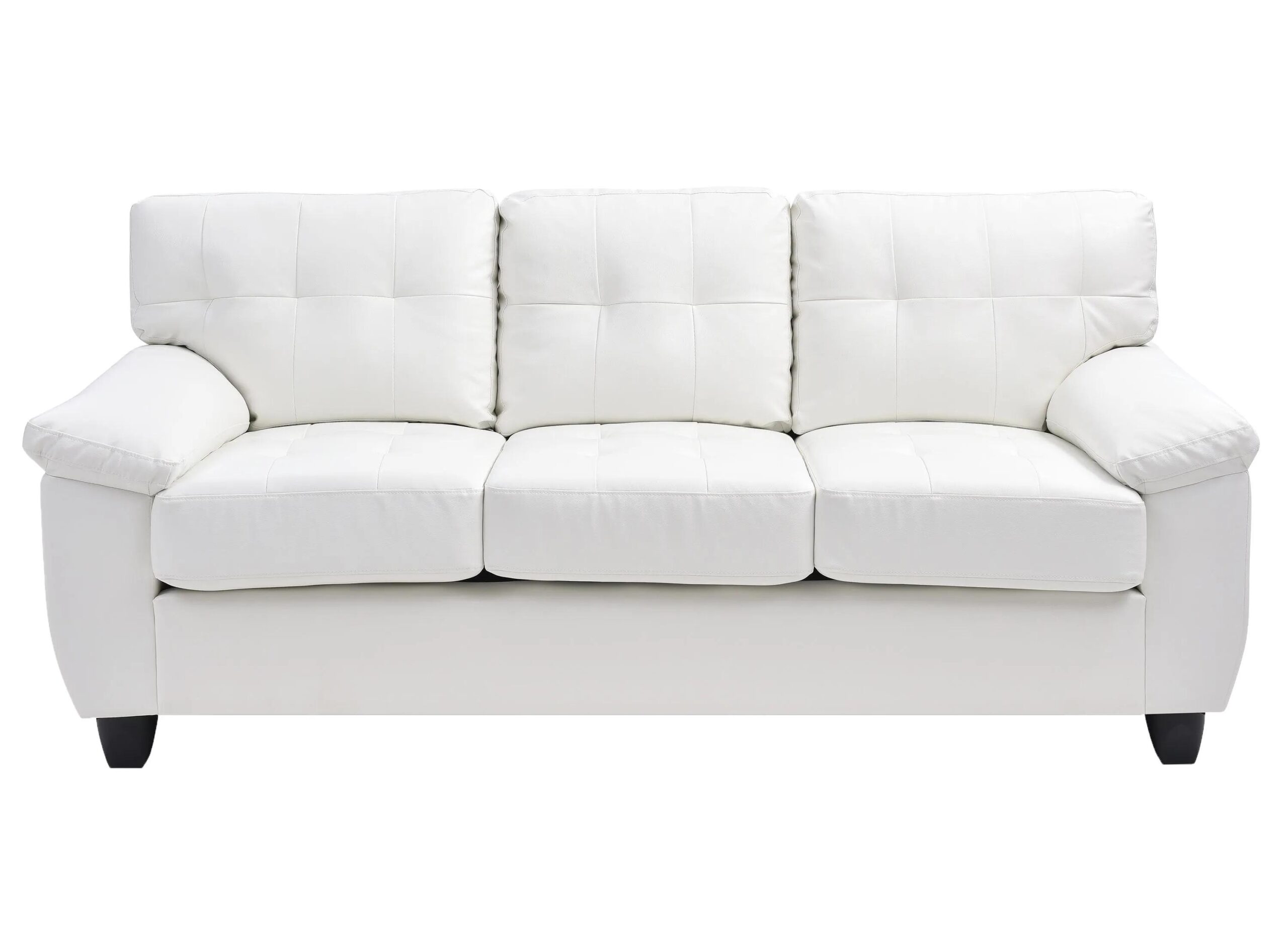 This modern Gallant sofa features pocket coil seating which adds comfort and durability to the seat cushions as well as tufted backs. Covered in durable faux leather that is easy to clean and care for.