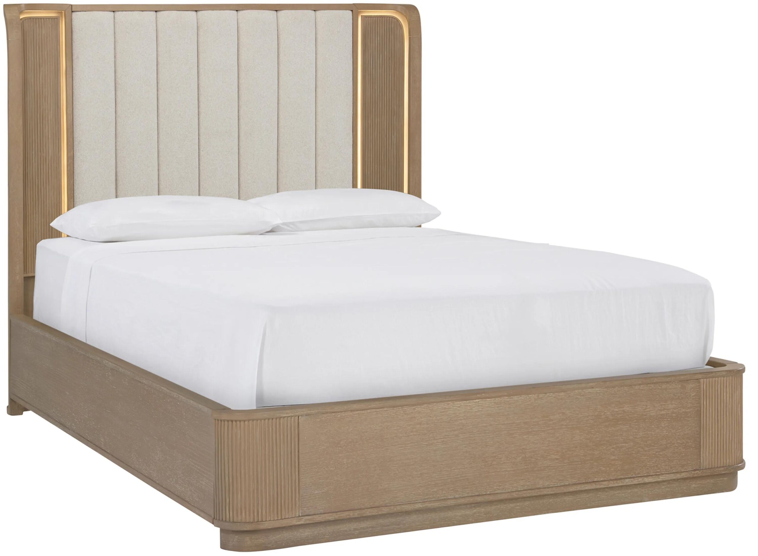 Inspired by the sleek glamour of Art Deco design, the Gatsby Bed brings cool texture and dimension to your room. The shelter-framed headboard with upholstered channel tufting is complemented by rounded corners, reeding details and a natural matte finish for an effortlessly chic vibe.