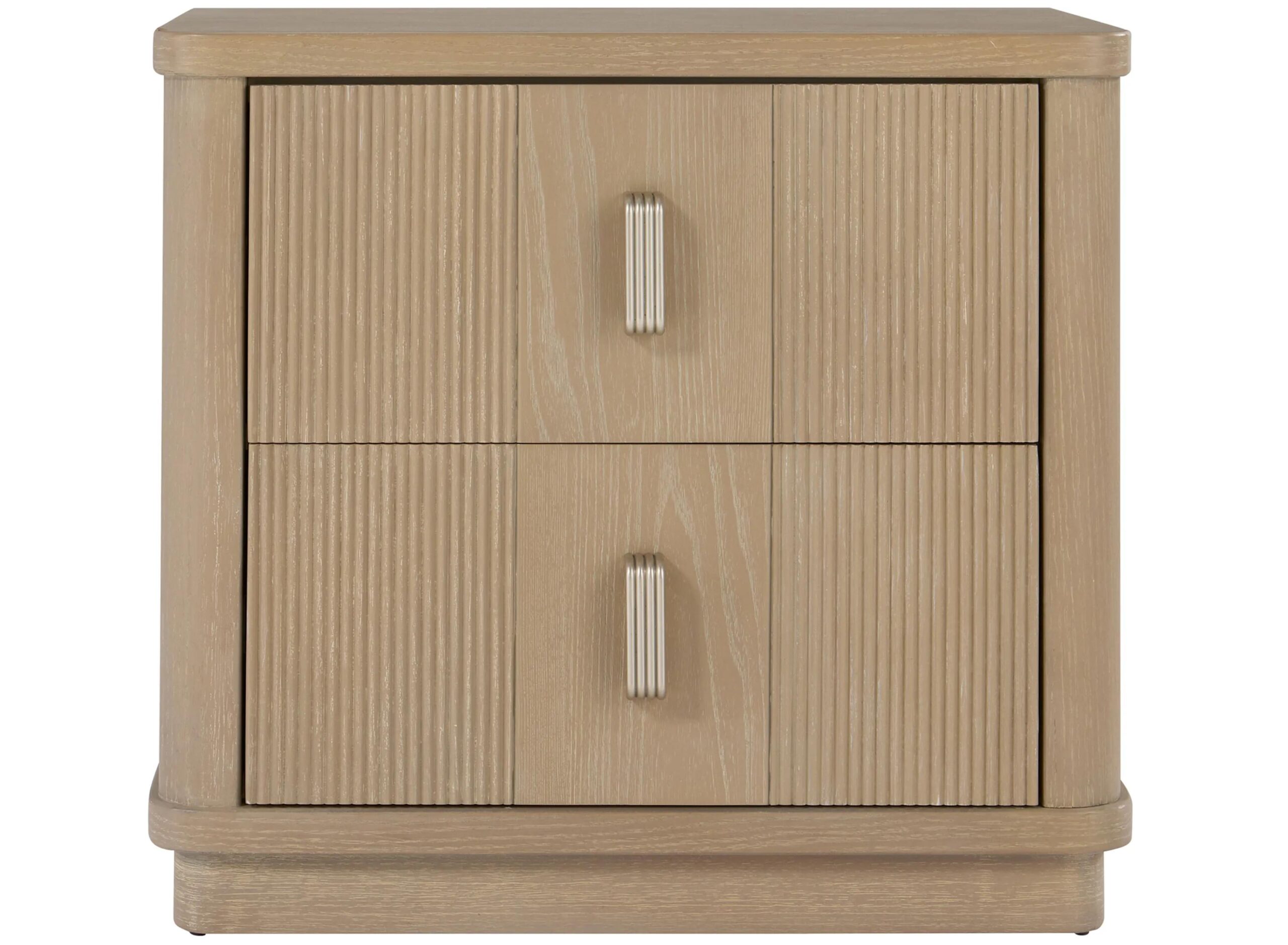 Inspired by the sleek glamour of Art Deco design, the Gatsby Nightstand brings cool texture and dimension to your room. Rounded corners, a natural matte finish and brushed nickel hardware make this an effortlessly chic and endlessly functional addition to a modern bedroom.