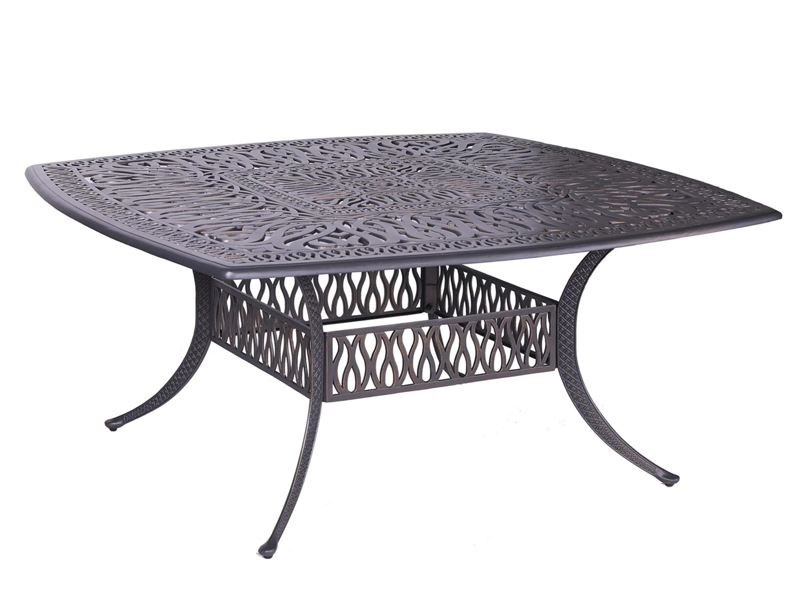 If you use our modern design Geneva outdoor square dining table, you will be in love with this beautiful table. This handsome piece is constructed from heavy duty cast aluminum, finished with weather-resistant powder coating.