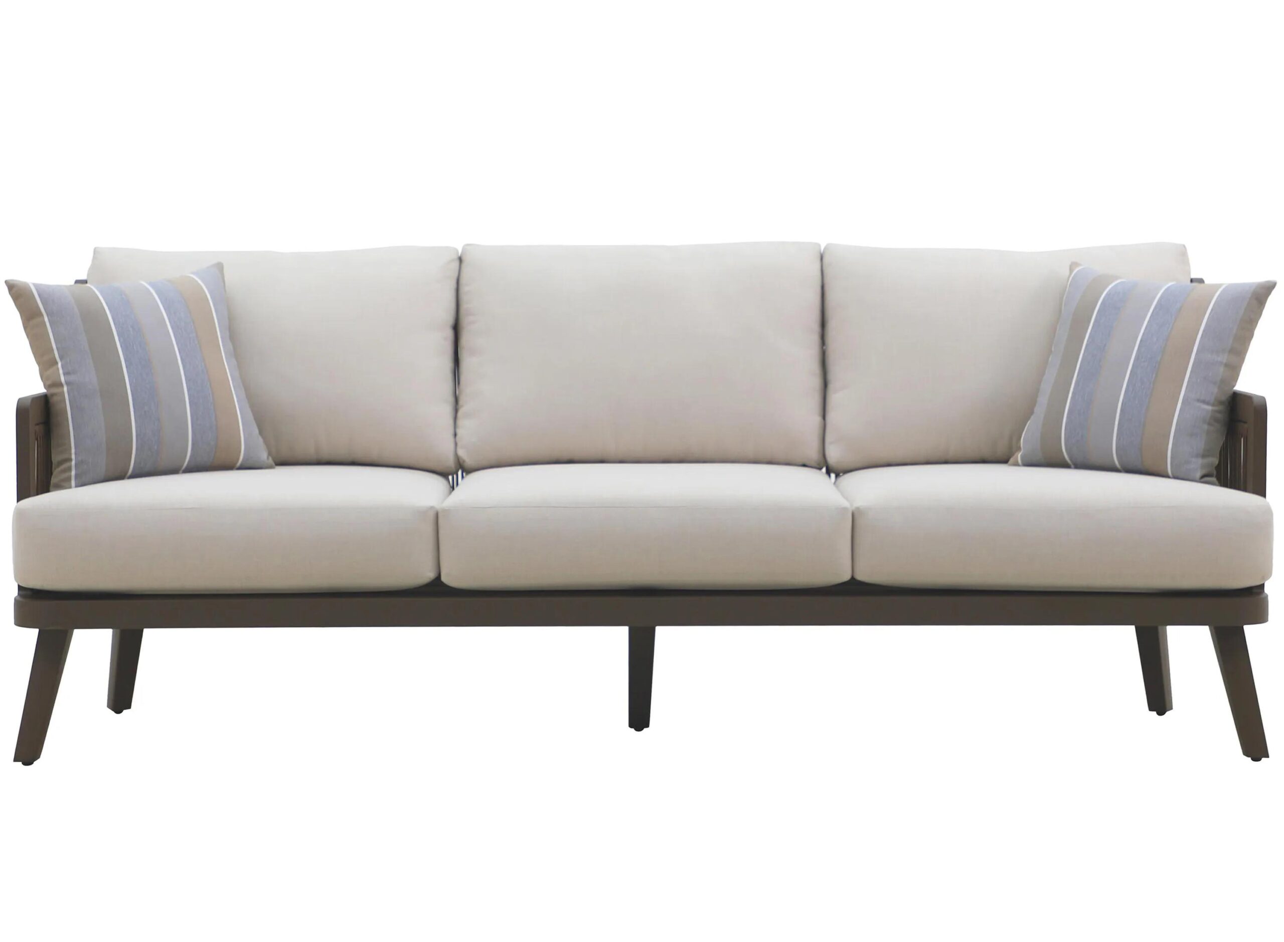 Genova Patio Sofa offers a perfect blend of durability, comfort, and style for your outdoor living space. Built with a strong aluminum frame and a baked-on powder coat, this sofa is designed to withstand scratches and ensure long-lasting performance.