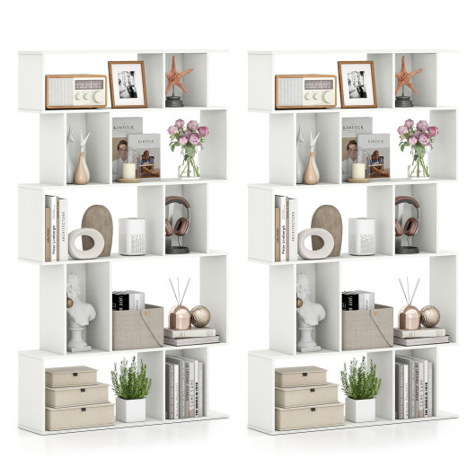 Geometric Bookshelf Set of 2 5-Tier Bookcase with Open Shelves